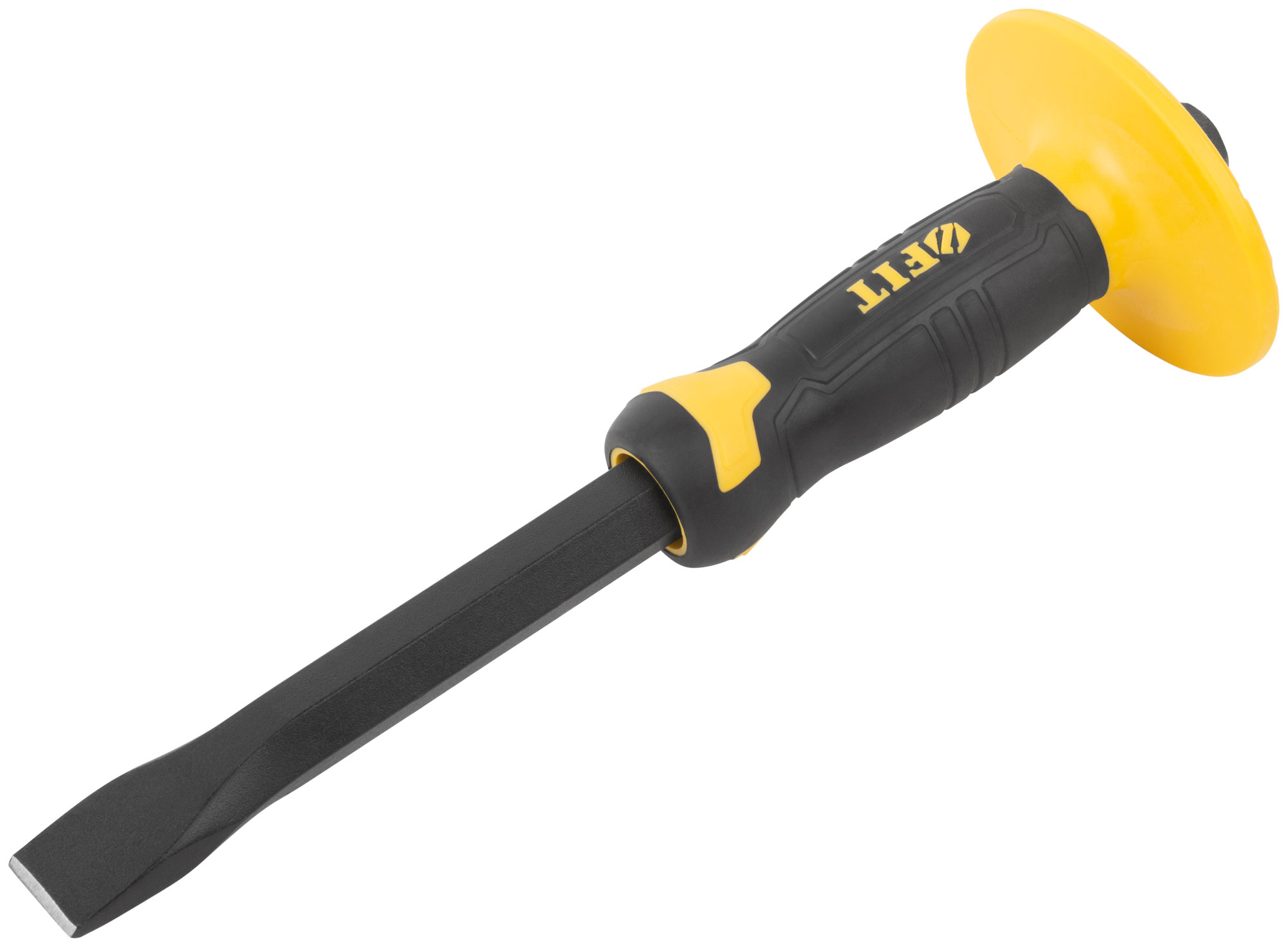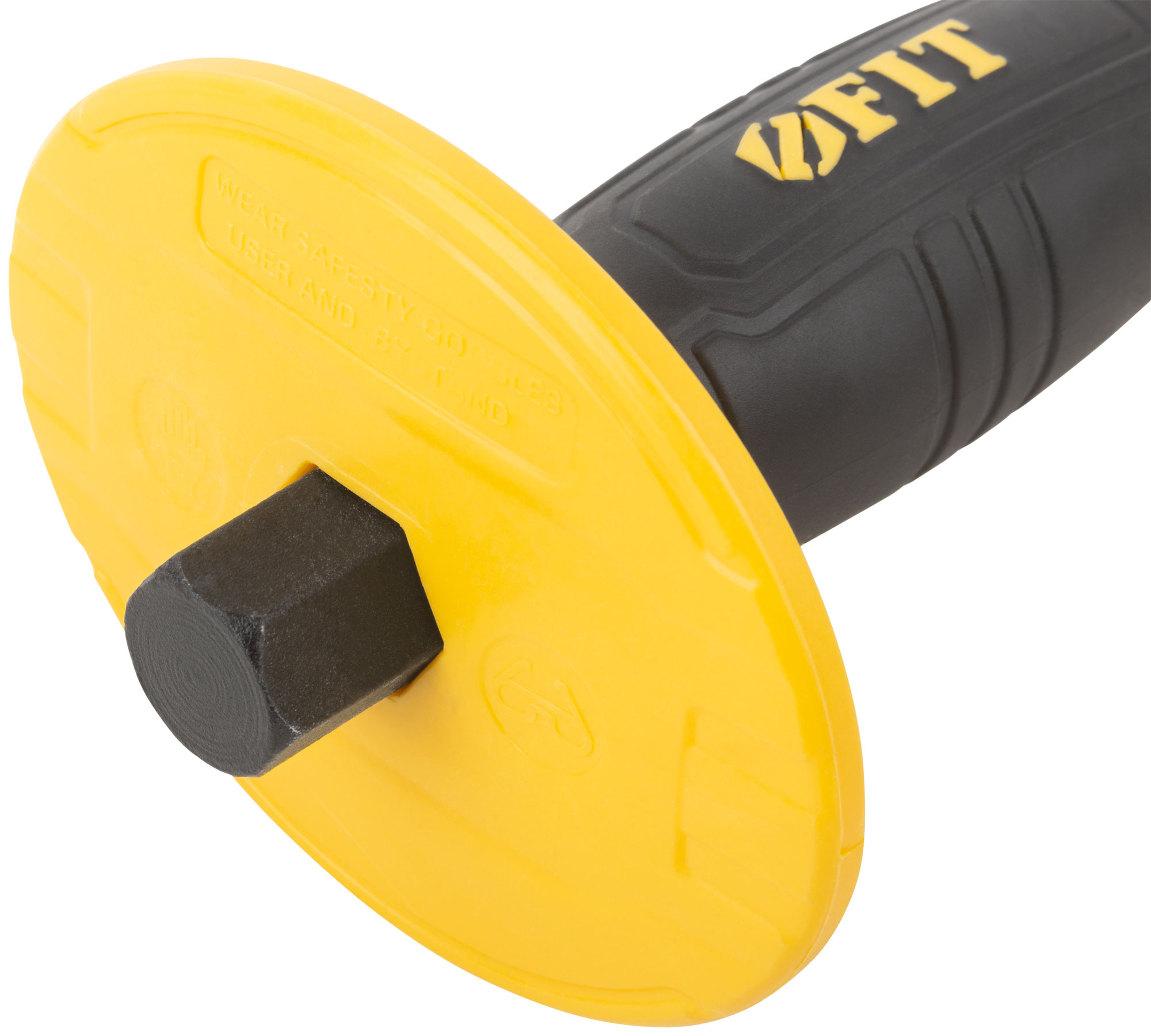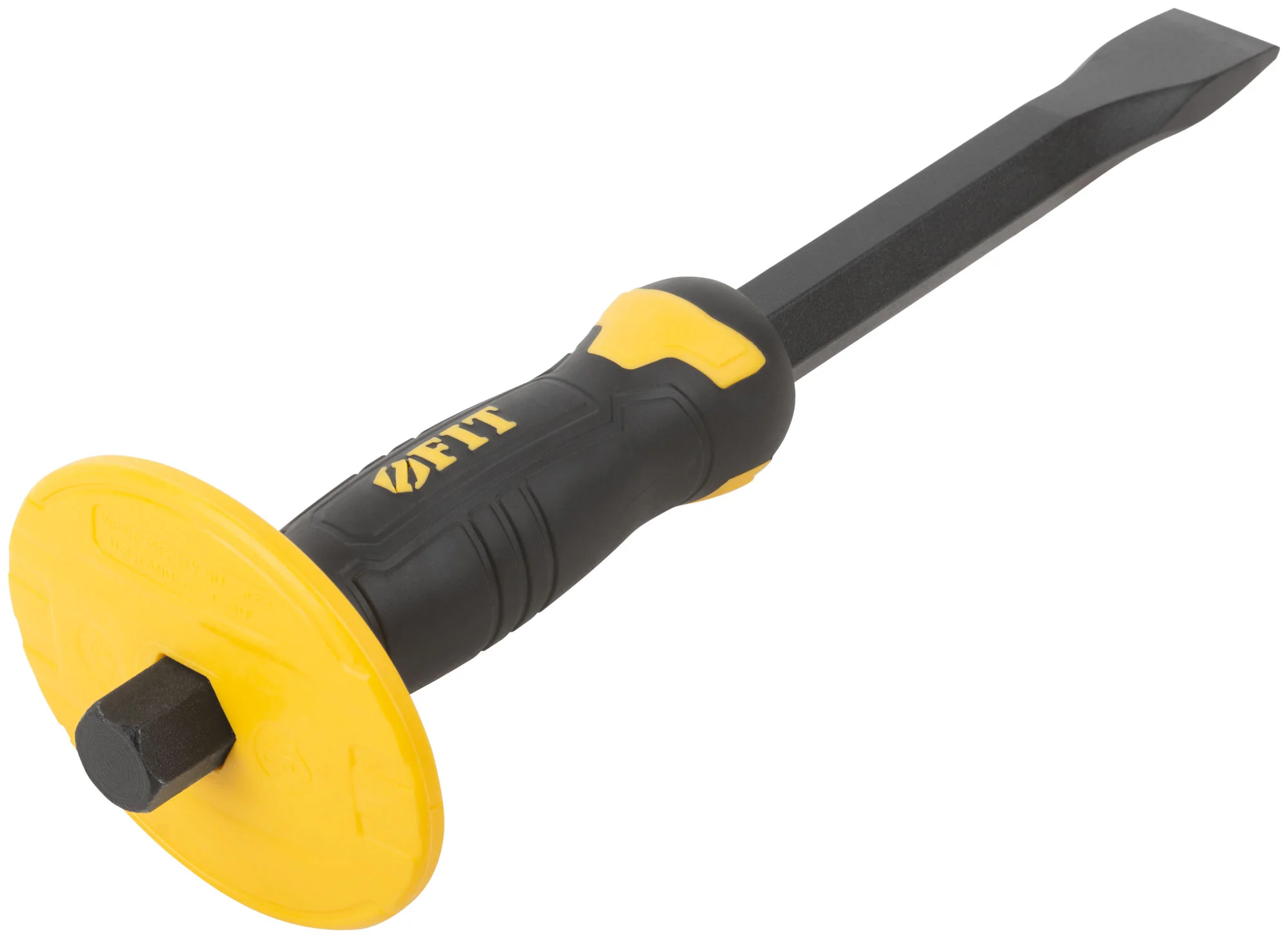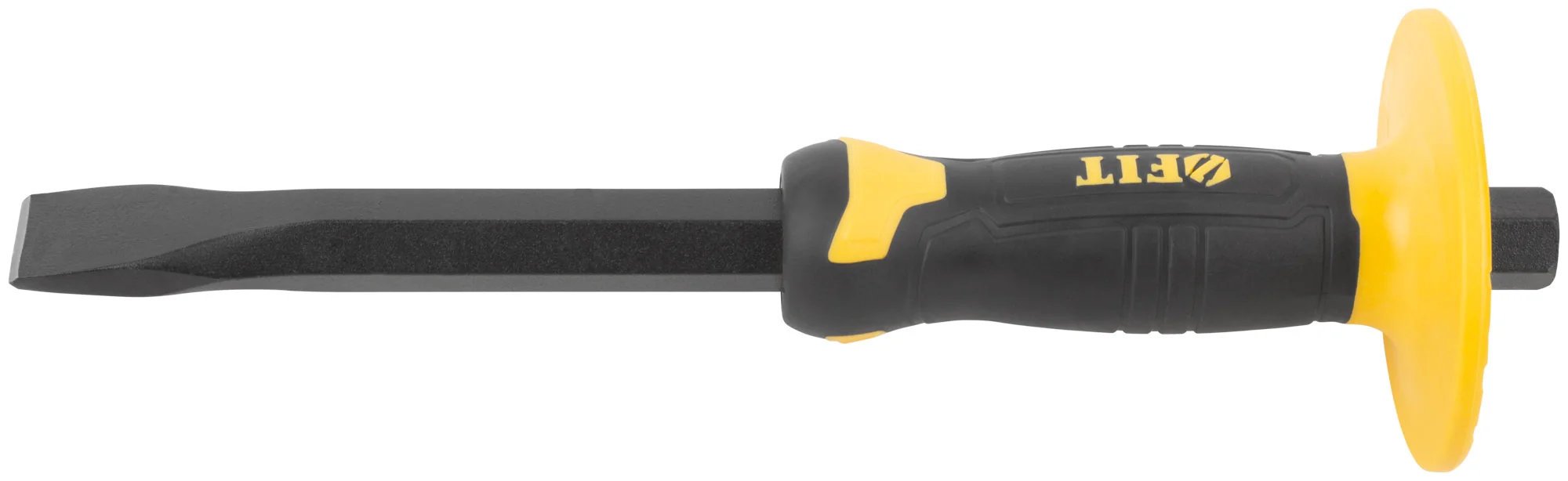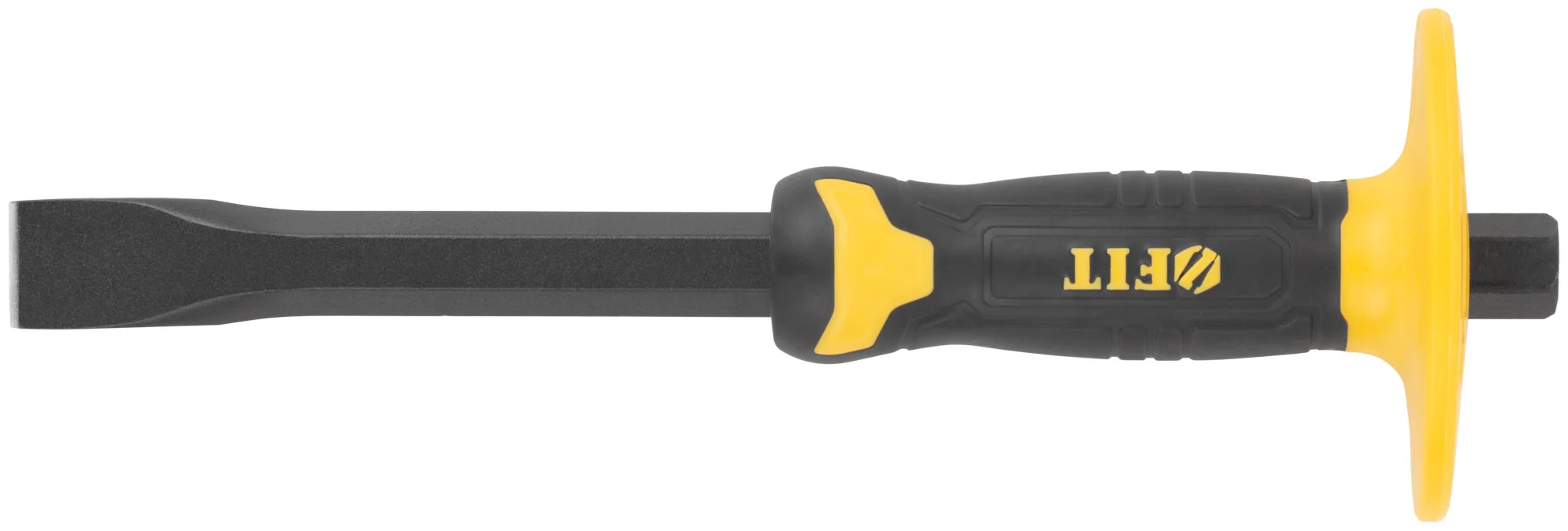 Зубило FIT с протектором идеально подходит для демонтажа и обработки различных материалов на стройке. Прорезиненный протектор защищает руки от случайных ударов, обеспечивая безопасность и комфорт при использовании.