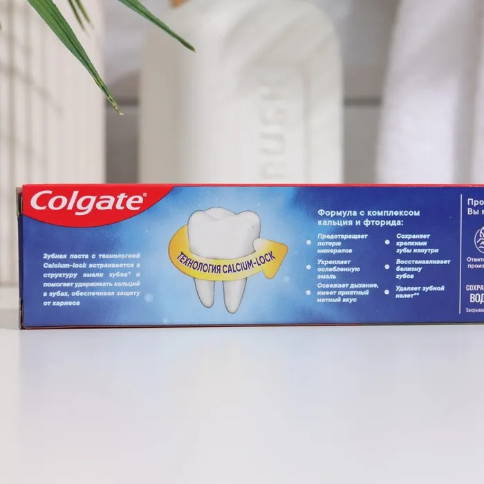 Благодаря уникальной формуле с технологией Calcium-lock, зубная паста Colgate «Максимальная защита от кариеса» проникает в структуру эмали и удерживает кальций, укрепляя ослабленную эмаль и защищая зубы от кариеса со всех сторон.