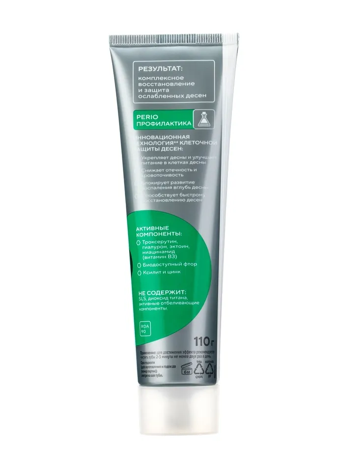 Зубная паста для поддержания здоровья дёсен, 110 г — специально разработана для заботы о дёснах и профилактики их воспалений. Активные компоненты пасты укрепляют дёсны, уменьшают кровоточивость и защищают от образования налёта и зубного камня. Мягкая, но эффективная формула обеспечивает комплексный уход за полостью рта, поддерживая здоровье зубов и дёсен ежедневно.