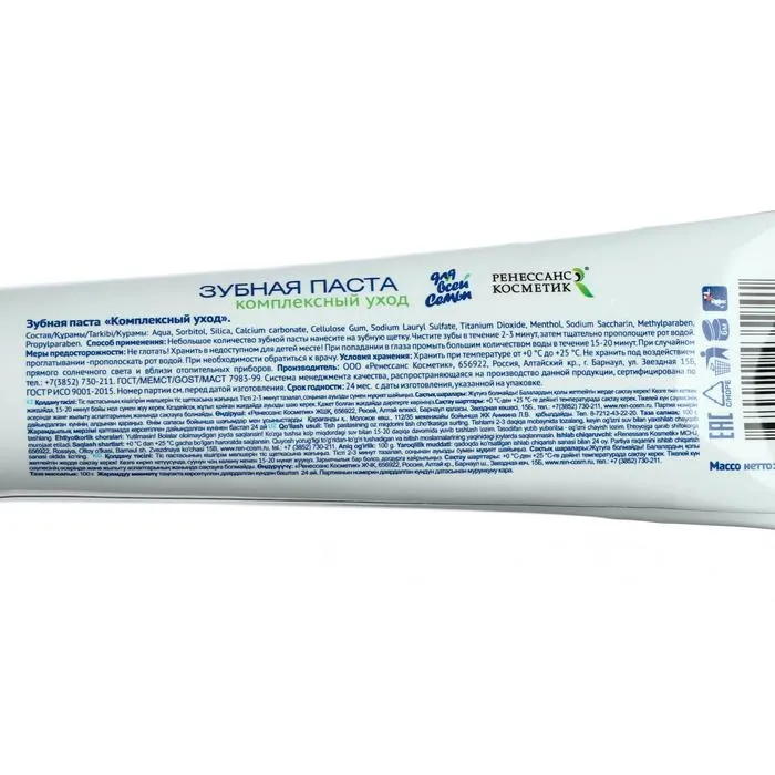 Зубная паста «Для всей семьи», комплексный уход, 100 г — Характеристики