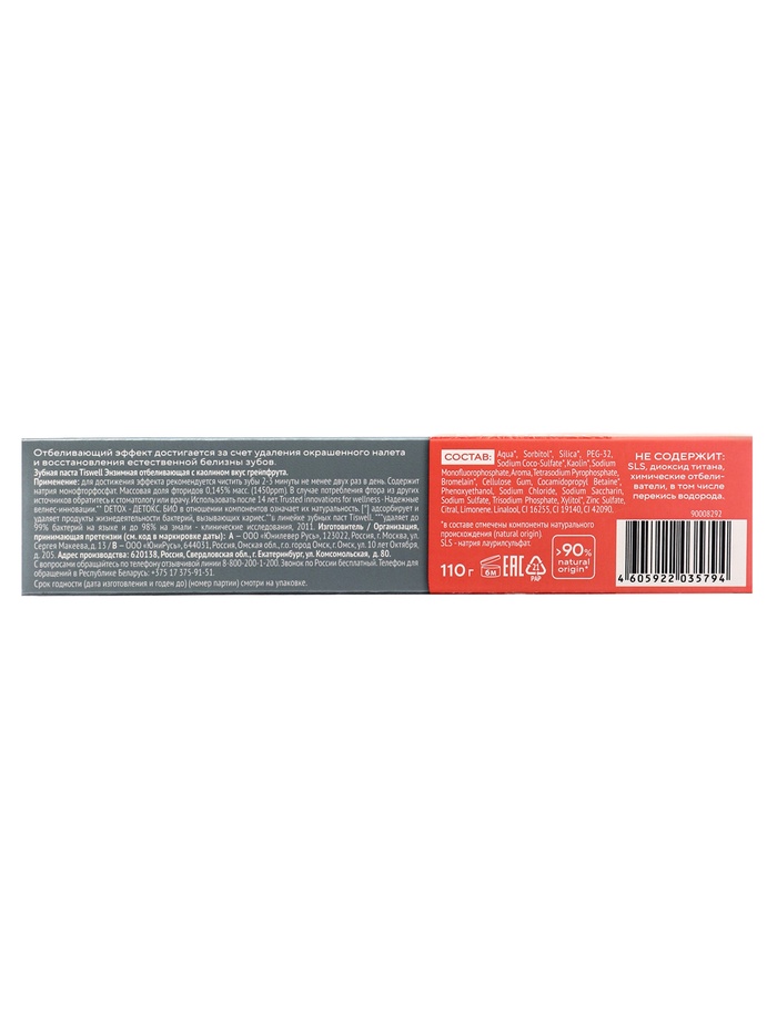 Зубная паста энзимная, отбеливающая с каолином, со вкусом грейпфрута, 110 г — инновационная формула для бережного отбеливания и ухода за зубами. Энзимы мягко разрушают и удаляют налёт, а каолин деликатно полирует эмаль, восстанавливая её естественную белизну. Кальций и другие активные компоненты укрепляют зубы, защищают их от кариеса и снижают чувствительность.