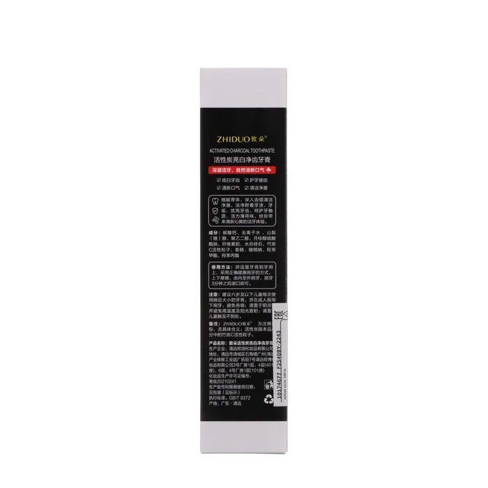 Зубная паста с углем предназначена для эффективного отбеливания зубов и устранения желтизны, возвращая вашим зубам естественную белизну и сияние. Благодаря активному углю в составе, паста обеспечивает глубокое очищение и дезодорирование полости рта.