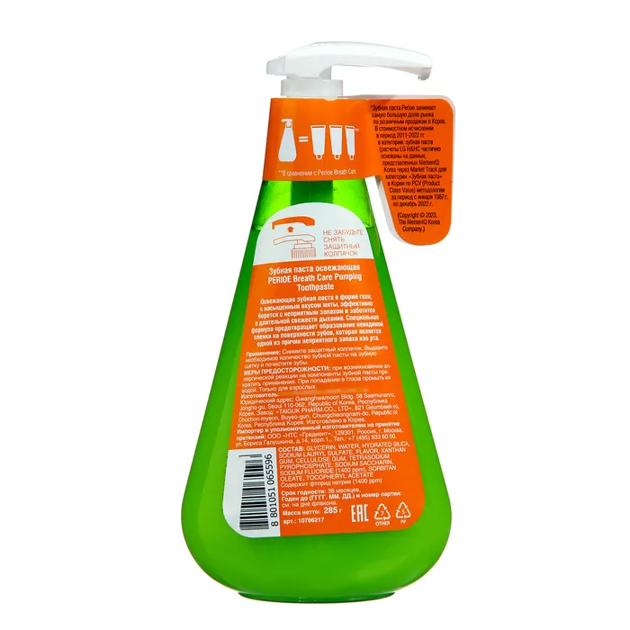 Большой объем. Флакон вмещает в себя 3 обычных тюбика зубной пасты. Модная и современная упаковка поможет сэкономить место в ванной комнате и дополнит интерьер.