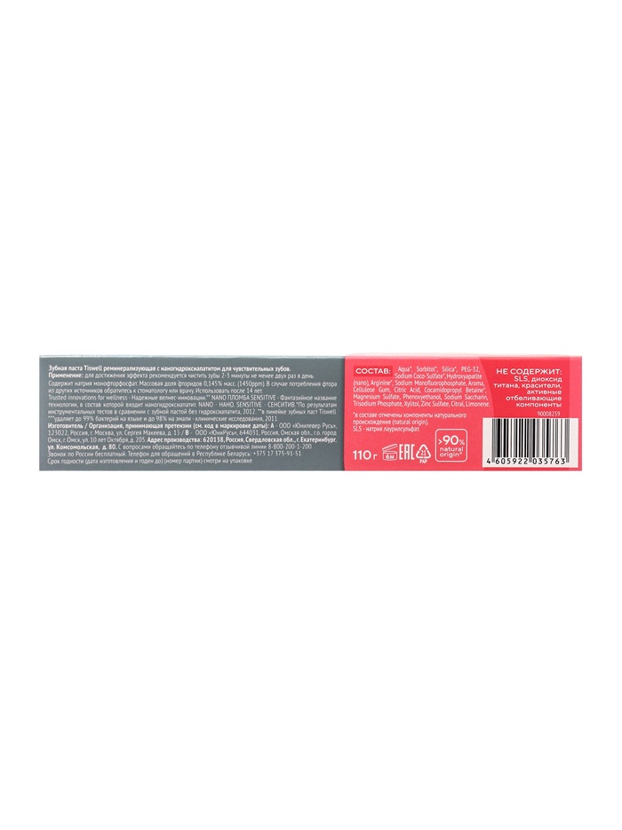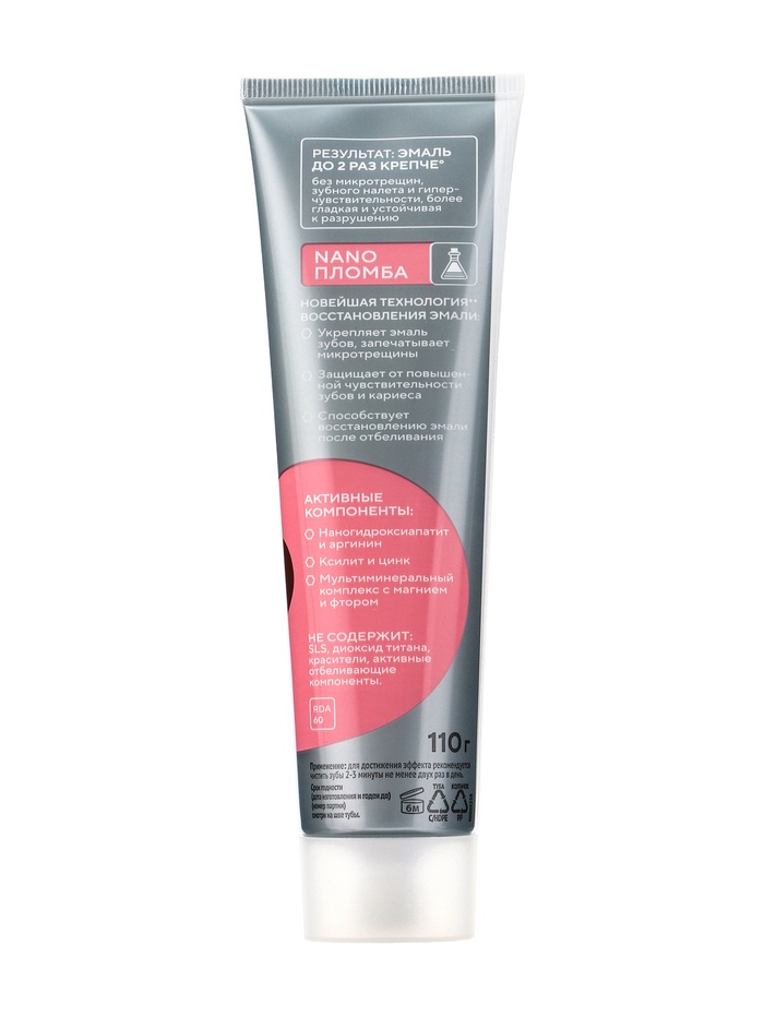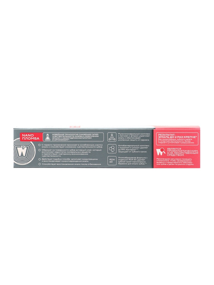 Зубная паста реминерализирующая с наногидроксиапатитом для чувствительных зубов, 110 г — специально разработана для бережного ухода за зубами с повышенной чувствительностью. Формула с наногидроксиапатитом проникает в микротрещины эмали, укрепляет её и способствует восстановлению естественной структуры зубов, снижая чувствительность к горячему, холодному и сладкому.