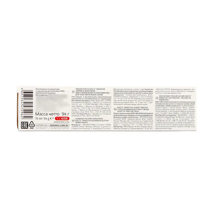 Зубная паста R.O.C.S. SENSITIVE, восстановление и отбеливание, 94 г — Характеристики