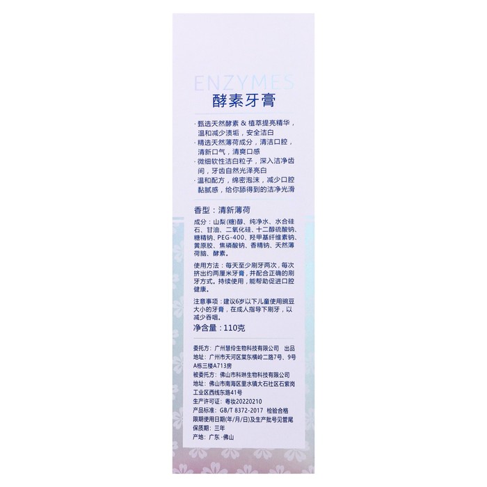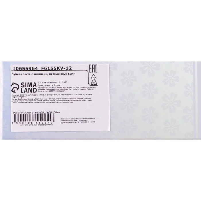 Зубная паста с энзимами, мятный вкус 110 г — Характеристики