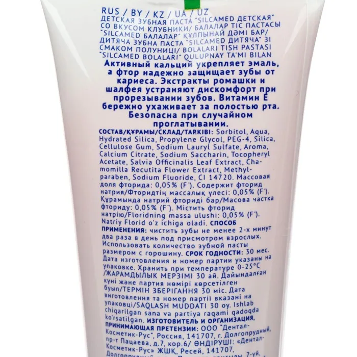 Зубная паста Silcamed, детская, Клубника, 65 г — Характеристики