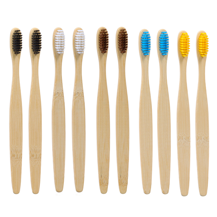 Зубная щетка бамбуковая средняя 10 штук, микс цветов