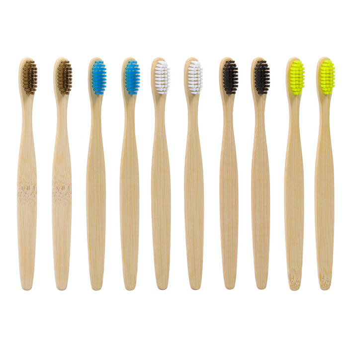 Зубная щетка бамбуковая жесткая, 10 штук, микс цветов