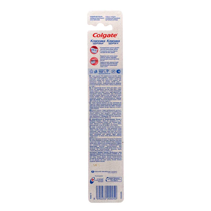Зубная щетка Colgate Классик плюс средней жесткости - это классическая зубная щетка, специально разработанная для эффективного и комфортного очищения зубов и десен. Она сочетает в себе прочность и гибкость, обеспечивая эффективное удаление налета и массаж десен.