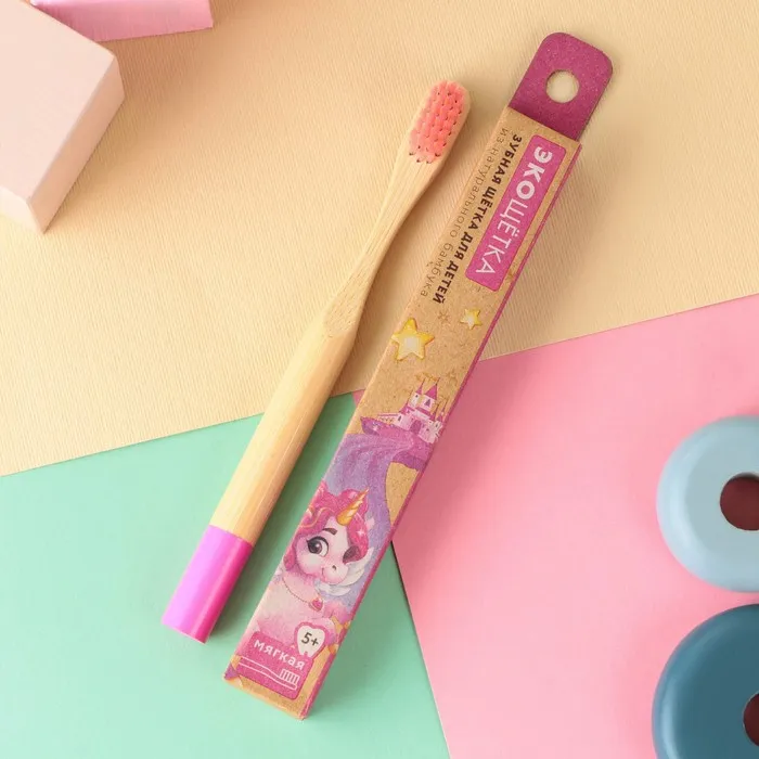 Зубная щетка детская, бамбук «Веселый единорог»