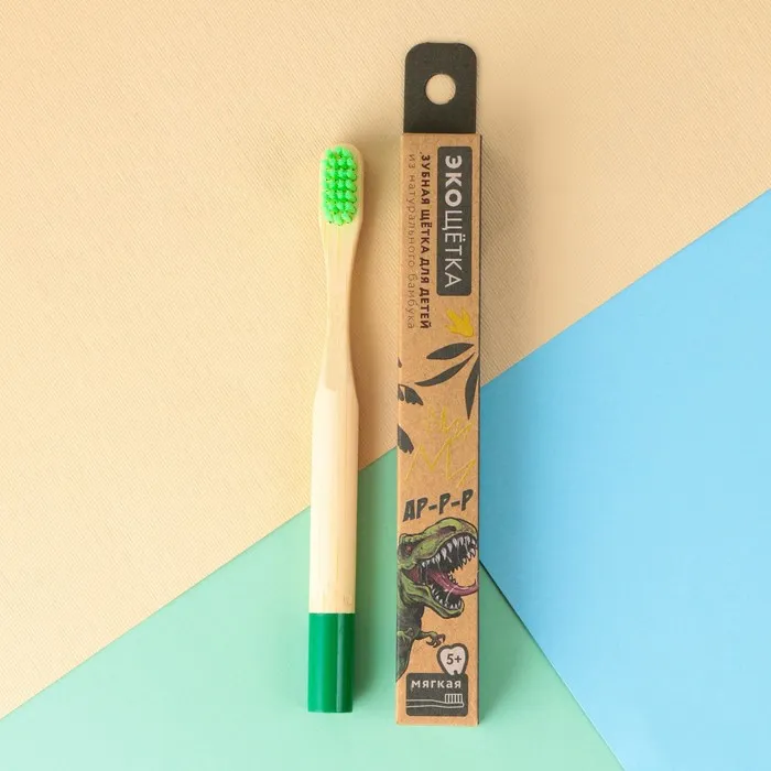 Зубная щетка детская бамбуковая «Зубастый динозаврик»