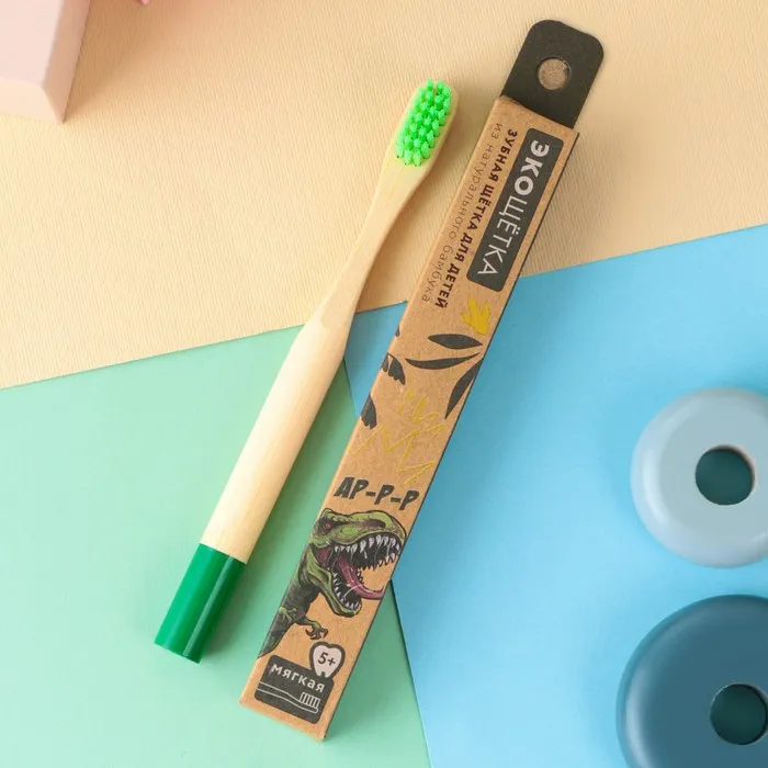 Зубная щетка детская бамбуковая «Зубастый динозаврик» — Характеристики