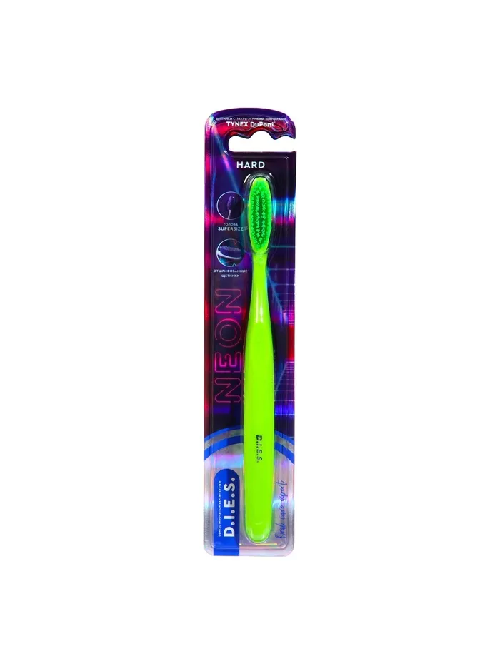 Зубная щетка D.I.E.S. Neon, жесткая, зеленый — Характеристики