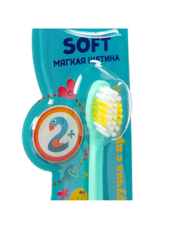 Мягкая щетина не травмирует чувствительные детские десны и не царапает эмаль молочных зубов.