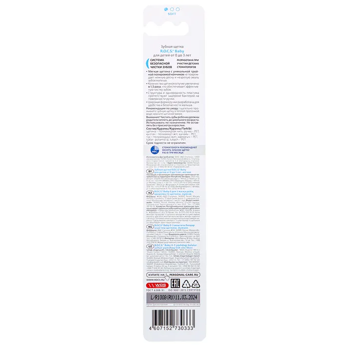 Зубная щетка R.O.C.S. Baby для детей от 0 до 3 лет микс для малышей от 0 до 3 лет разработана при участии детских стоматологов.