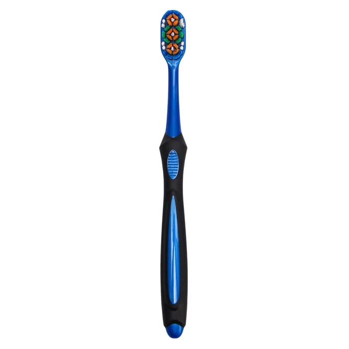 Эргономичный дизайн ручки зубной щётки обеспечивает комфортное удержание в руке и предотвращает скольжение во время чистки. Прорезиненная поверхность ручки предотвращает скольжение и обеспечивает надёжный захват.