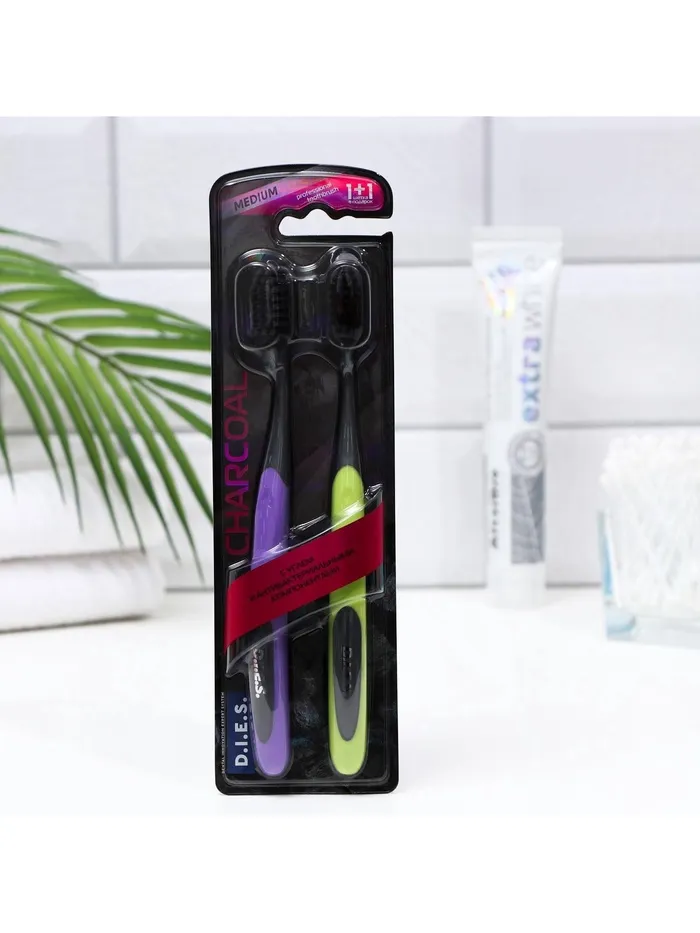 Зубная щётка D. I. E. S Charcoal, средней жёсткости, 1+1 шт микс