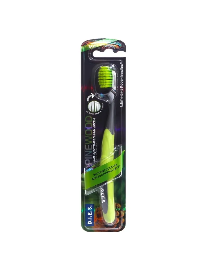Зубная щётка D.I.E.S. Pine Wood — идеальное решение для чувствительных дёсен. Мягкая щетина бережно очищает зубы, не повреждая эмаль, а экстракт сосны укрепляет дёсны и оказывает противовоспалительное действие.