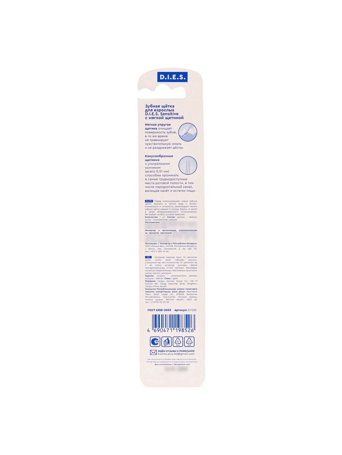 Зубная щётка D.I.E.S. Sensitive, мягкая — Характеристики