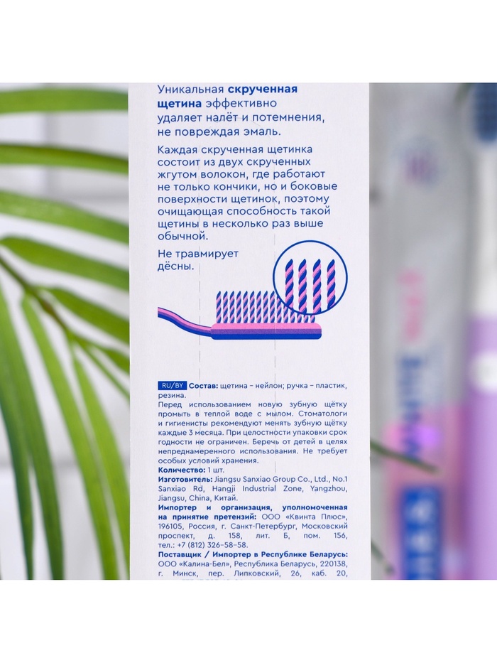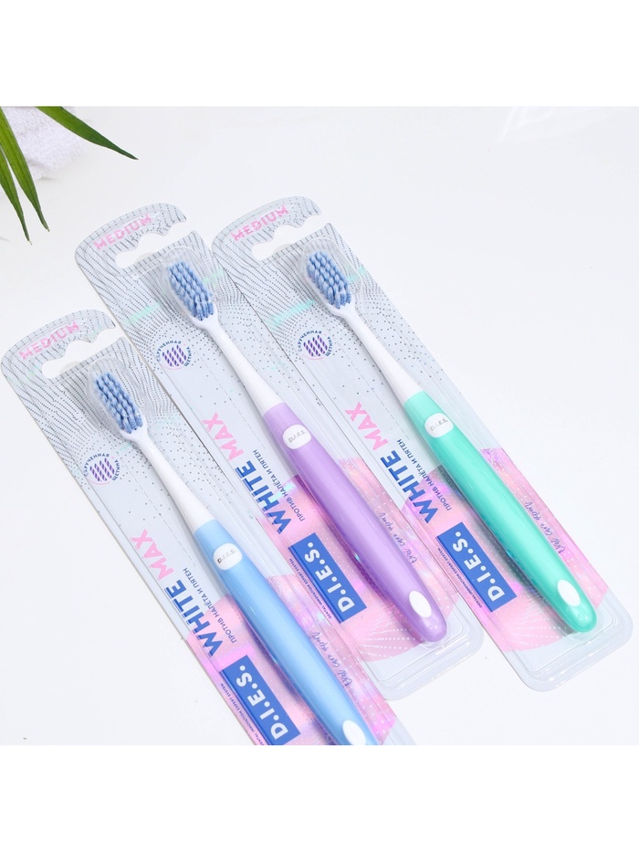 Описание: зубная щетка "D.I.E.S. WHITE MAX" против налета и пятен. Каждая скрученная щетинка состоит из двух скрученных жгутом волокон, где работают не только кончики, но и боковые поверхности щетинок. Поэтому очищающая способность такой щетины в несколько раз выше обычной. Закруглённый кончик каждой щетинки тщательно отполирован, поэтому щётка не повреждает дёсны и эмаль. Ровная форма подстрижки щетины увеличивает рабочую поверхность, обеспечивая максимальный контакт со всеми участками поверхности зуба и качественное удаление зубного налёта. Эргономичная ручка, покрытая силиконом, обеспечивает отсутствие скольжения во время использования.