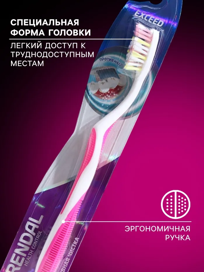 Описание: зубная щётка Rendall Exceed, мягкая эффективно удалит налёт и очистит полость рта, не травмируя её при этом. Специальные щетинки подстраиваются под контуры зубов и проникают даже в труднодоступные места. Эргономичная ручка обеспечивает комфортное и безопасное использование. Стоматологи рекомендуют чистить зубы как минимум два раза в день.