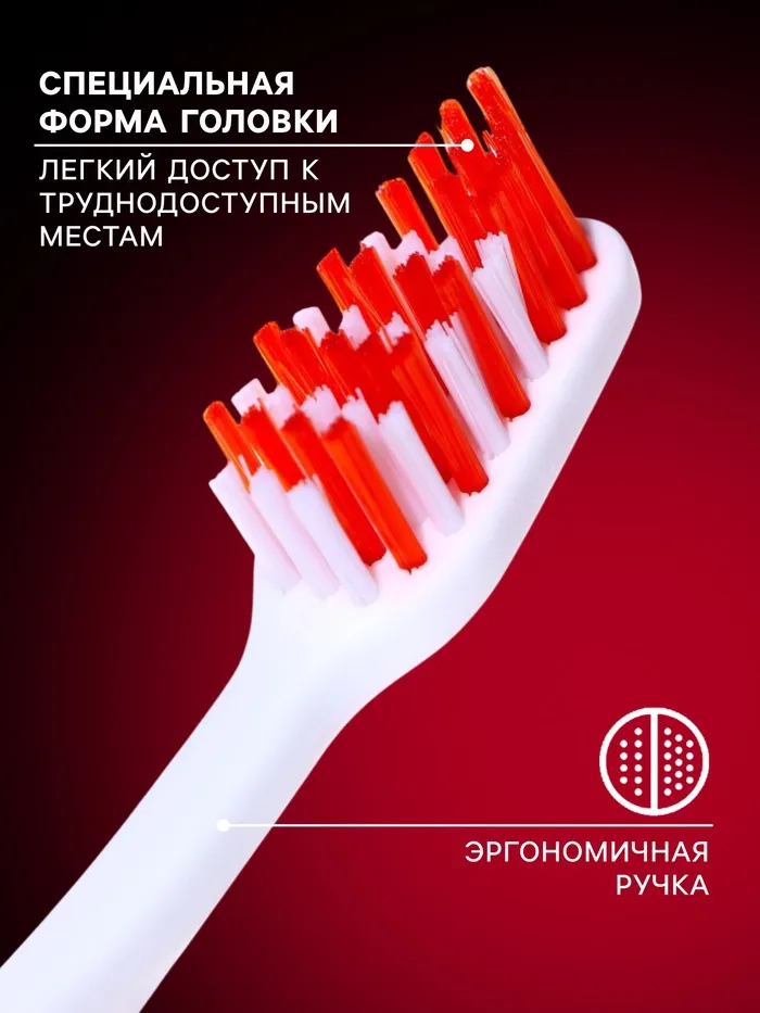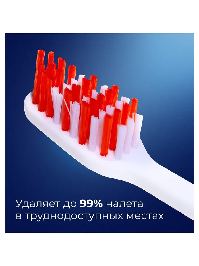 - Средняя жесткость щетинок: Щетины этой щетки имеют среднюю жесткость, что позволяет достичь эффективного удаления зубного налета и осадка, при этом бережно очищая зубы и десны.