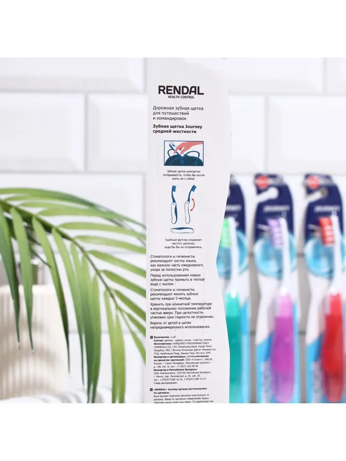 Зубная щётка Rendall Journey, средней жёсткости, складная, микс, 1 шт. — Характеристики