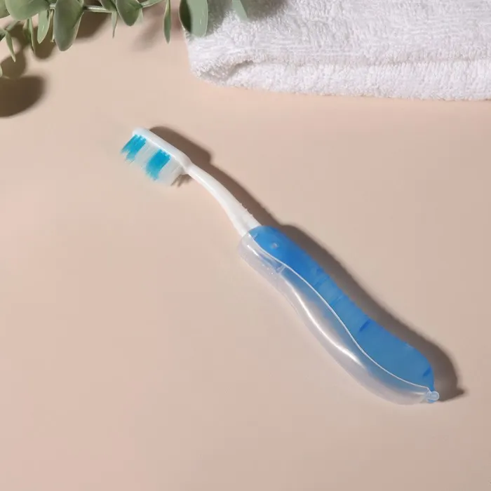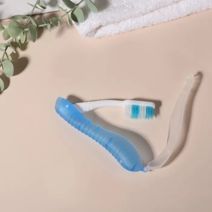 Зубная щётка, складная, 18.3×2.7/11×2.7(±1) см, синяя, белая — Характеристики