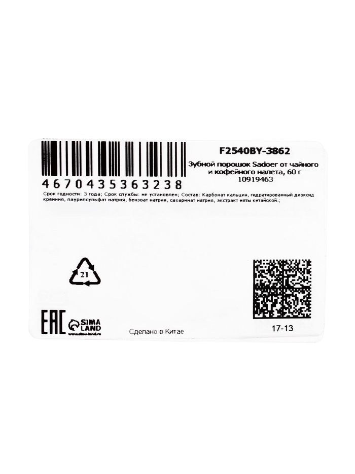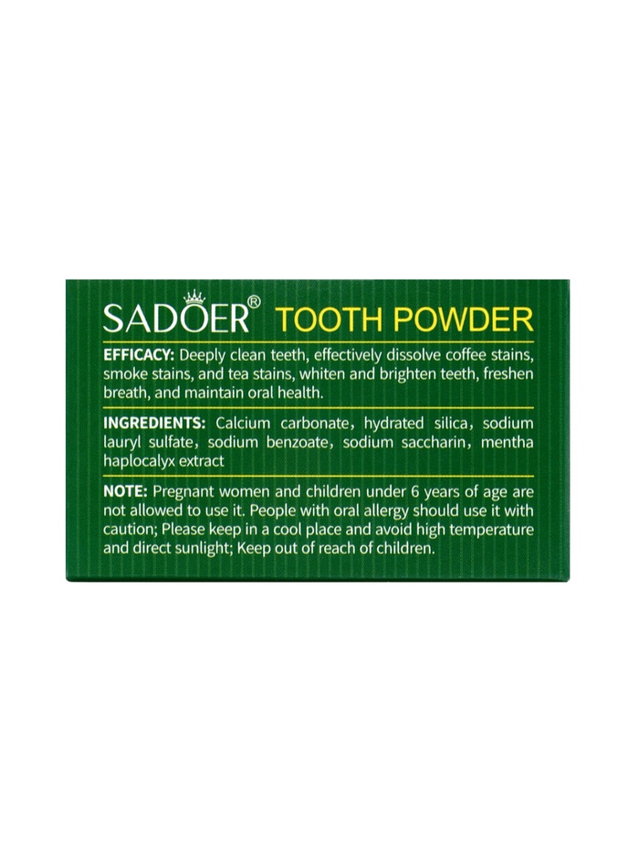 Зубной порошок SADOER от чайного и кофейного налёта — это надежное средство для поддержания белизны зубов и свежести дыхания каждый день, сохраняя улыбку яркой и ухоженной.