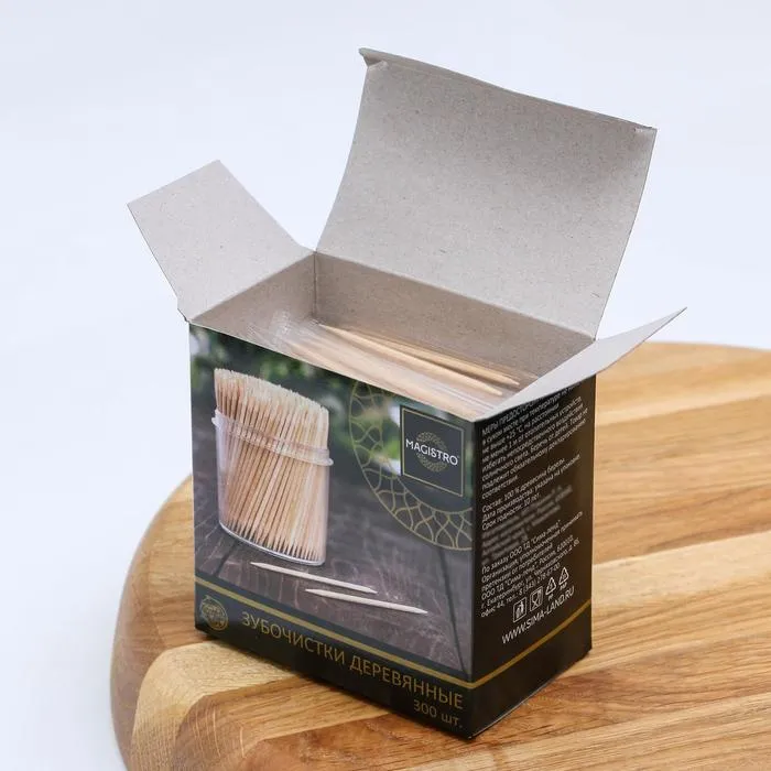 Зубочистки из берёзы Magistro, 300 шт, в индивидуальной упаковке, картонная коробка — Характеристики