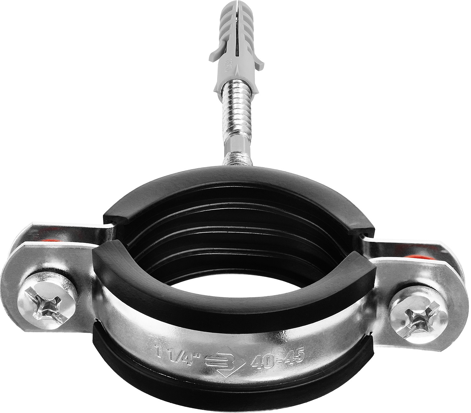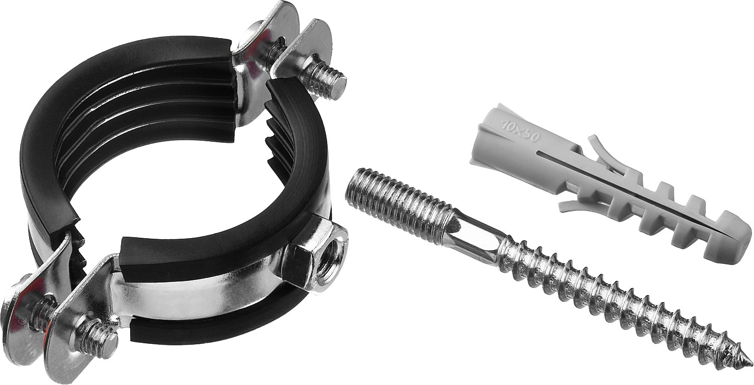 Стальные трубные хомуты способны выдерживать большие нагрузки и обеспечивают надежность крепления труб различного назначения к любым основаниям. Труба прочно фиксируется внутри хомута с помощью метрических винтов. Уплотнитель из высококачественной резины обеспечивает идеальную шумоизоляцию. Ширина ленты хомута составляет 20 мм.