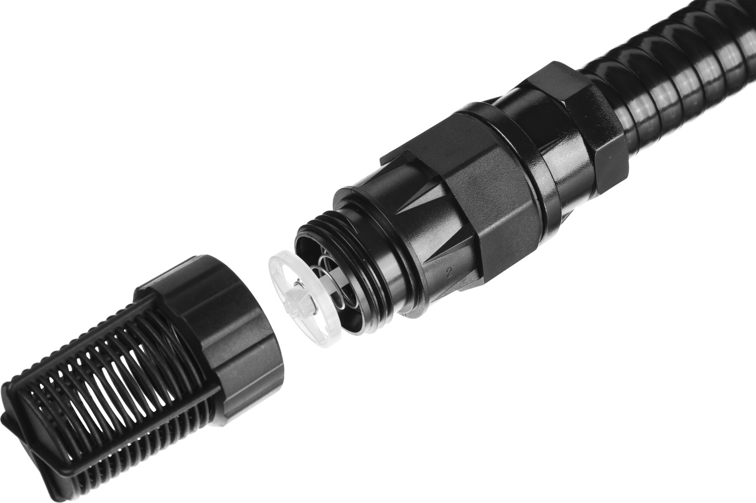 - Фитинги изготовлены из ударопрочного пластика и гарантируют надёжность соединений и длительный срок службы изделия.