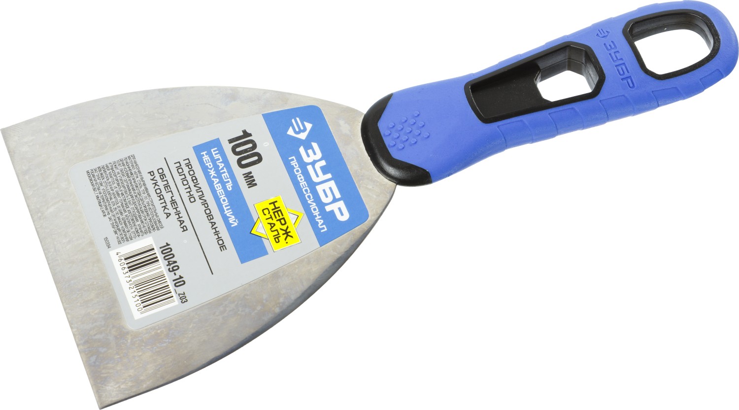 ЗУБР 100 мм, х-образное профилированное полотно, облегченная двухкомпонентная ручка, нержавеющий шпатель, Профессионал (10049-10)