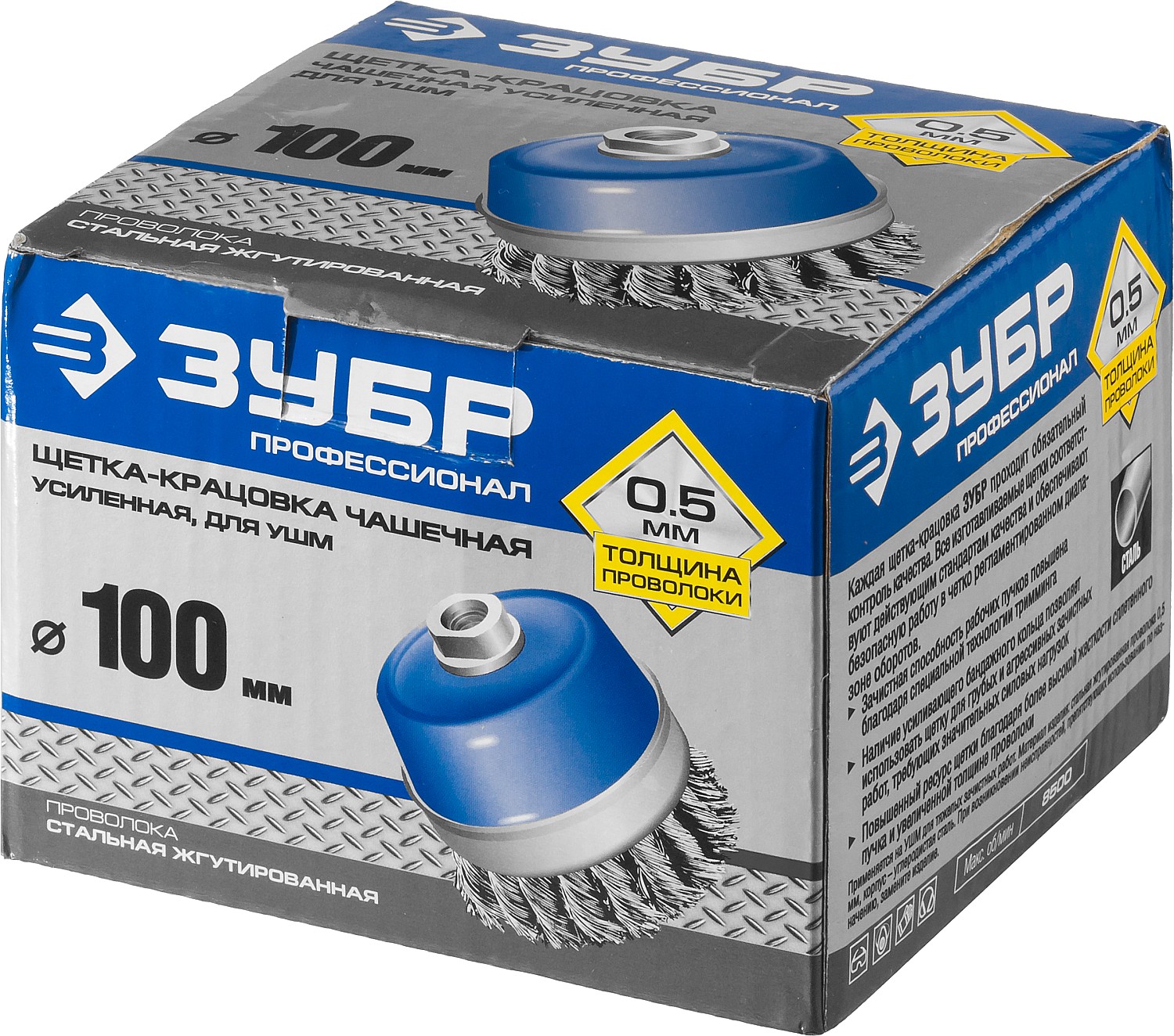 Каждая щетка-крацовка ЗУБР проходит обязательный контроль качества. Все изготавливаемые щетки соответствуют действующим стандартам качества и обеспечивают безопасную работу в четко регламентированном диапазоне оборотов.