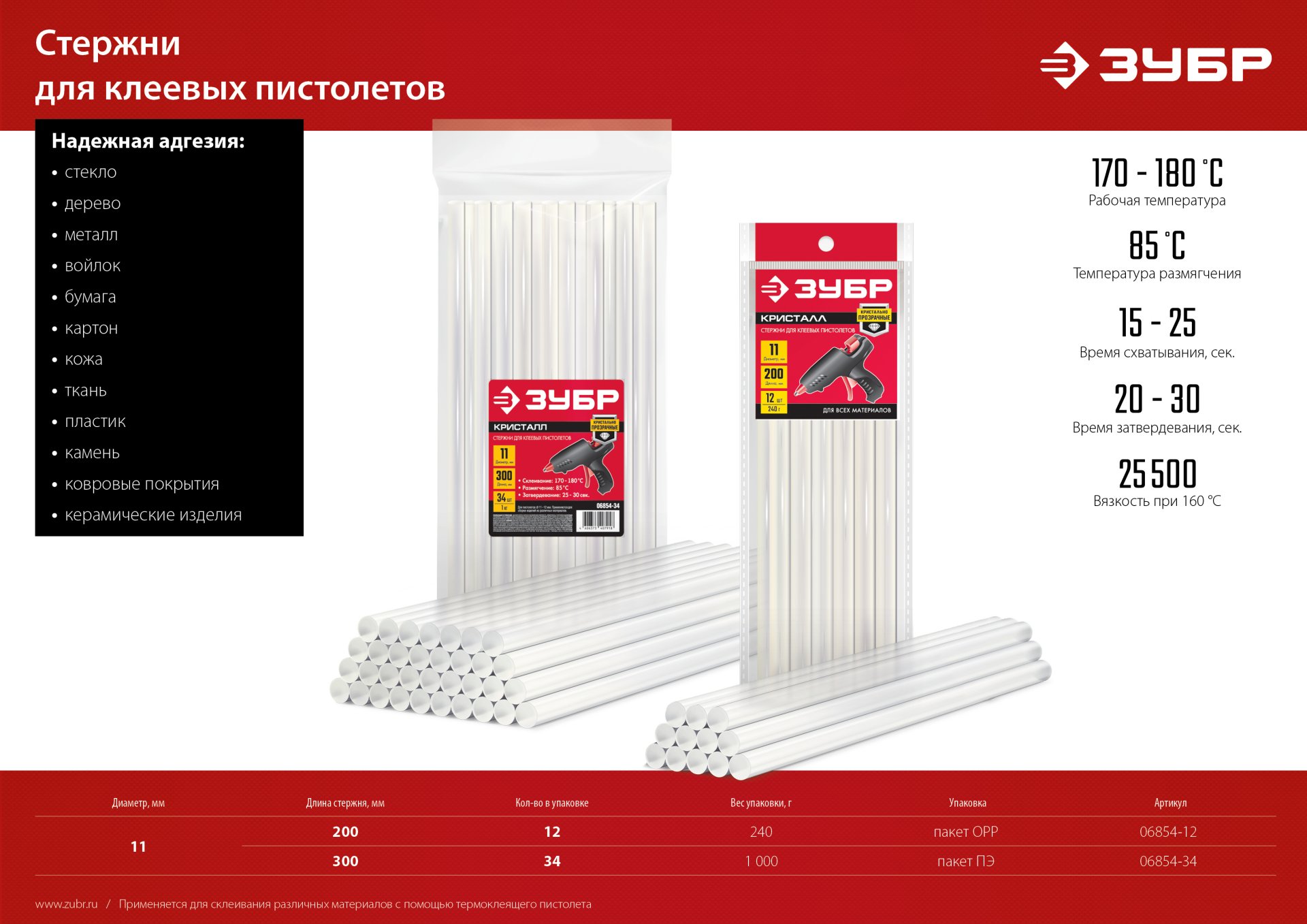Кристально прозрачные клеевые стержни обеспечивают полную прозрачность клея после застывания.