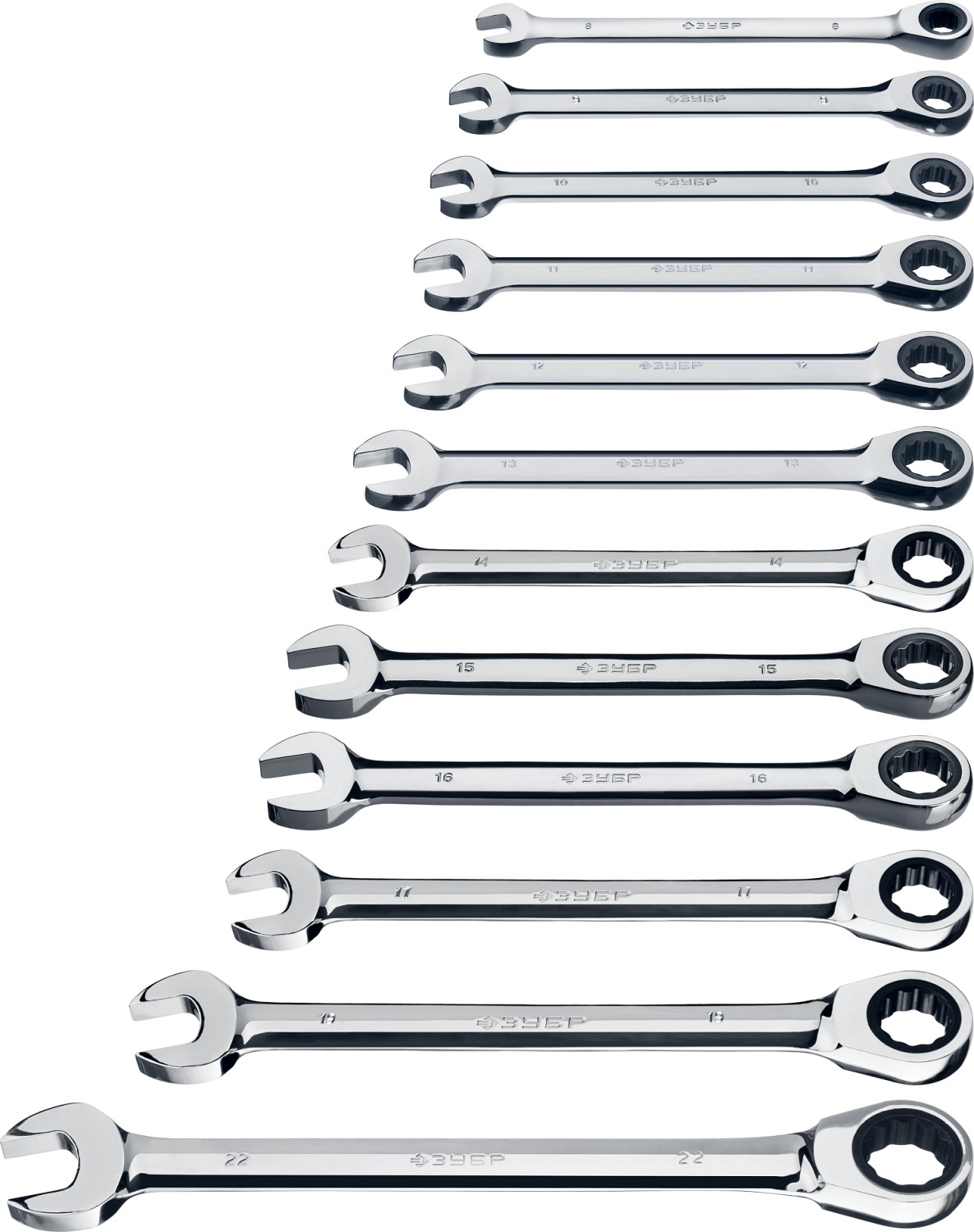 ЗУБР 12 шт, 8 - 22 мм, набор комбинированных трещоточных гаечных ключей, Профессионал (27075-H12)