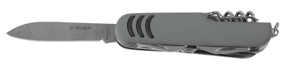 ЗУБР 12 в 1, обрезиненная рукоятка 90 мм, складной, мультитул, многофункциональный нож (47780)