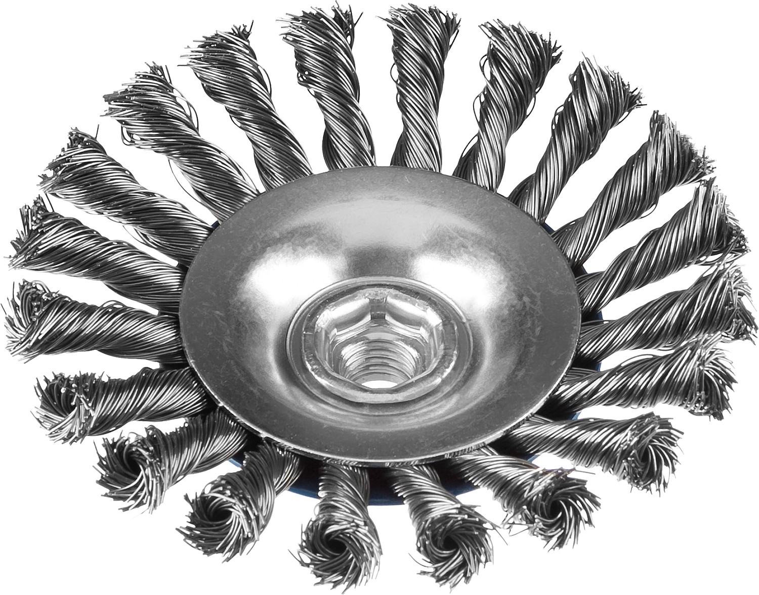 - Повышенный ресурс щетки благодаря еще более высокой жесткости сплетенного пучка и увеличенной толщине проволоки