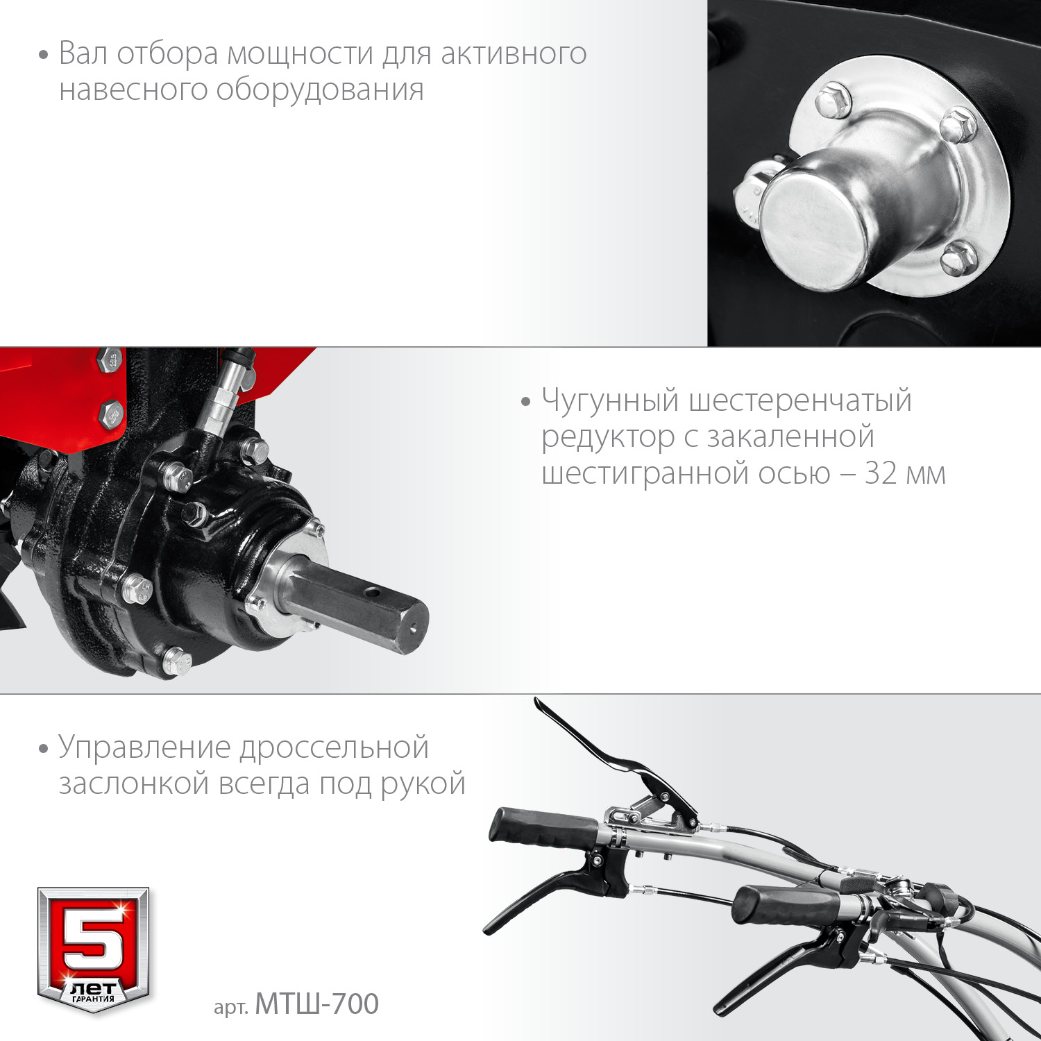 • Конструкция мотоблока позволяет использовать его с различными навесными оборудованием