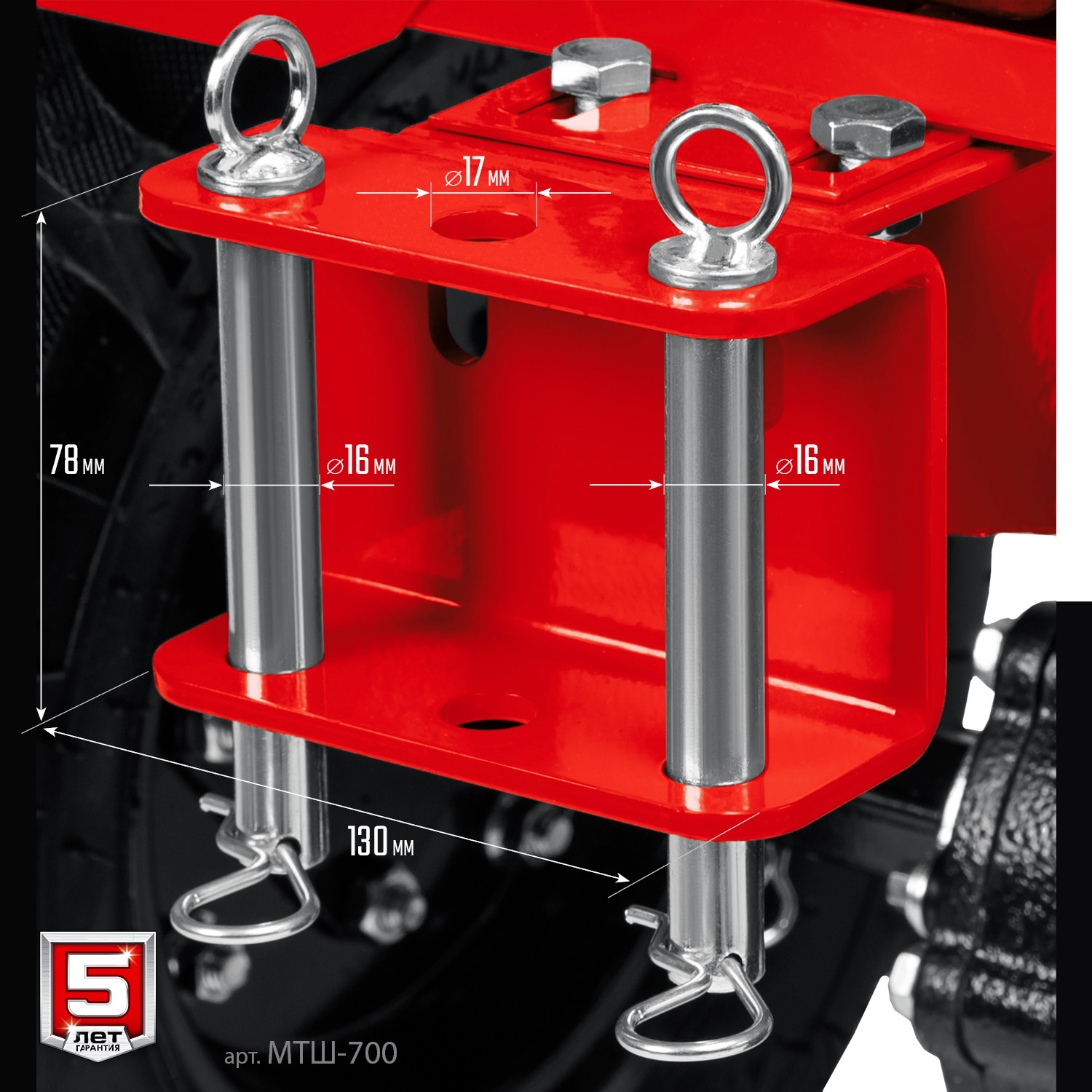 • Универсальная сцепка позволяет использовать различное навесное оборудование