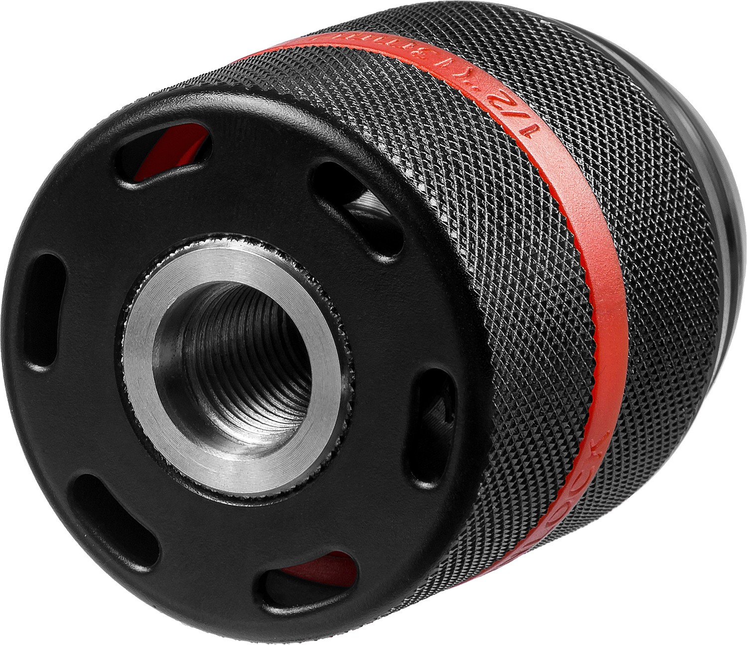 Патрон применяется для быстрого ручного зажима сверл, буров, концевых фрез и другого режущего инструмента с цилиндрическим, трёх- и шестиранным хвостовиком во всех типах ударных электрических, акумуляторных и ручных дрелей.