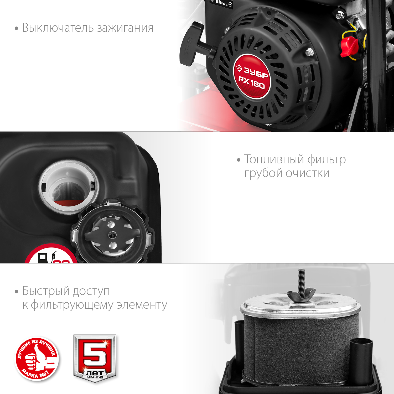 Виброплита предназначена для уплотнения бетонных, асфальтовых и сыпучих материалов, а также для формирования уплотненных поверхностей. Компактная конструкция позволяет осуществлять уплотнение смешанного грунта в самых узких местах, даже в очень узких траншеях. Направляющая рукоятка с виброзащитой позволяет увеличить количество часов непрерывной работы и снизить усталость для оператора. Четырехтактный двигатель ″ЗУБР″ обеспечит беспроблемную эксплуатацию при минимальном сервисном обслуживании на весь срок использования.