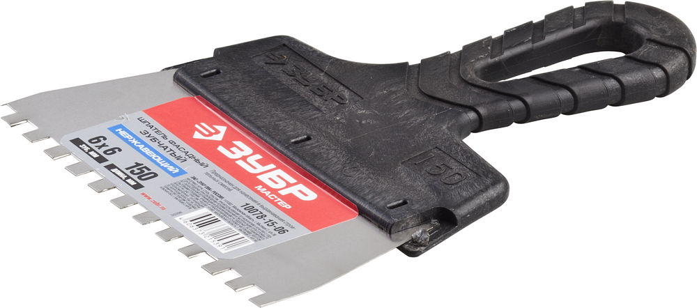 ЗУБР 150 мм, зуб 6 х 6 мм, пластиковая ручка, нержавеющий фасадный шпатель (10078-15-06)