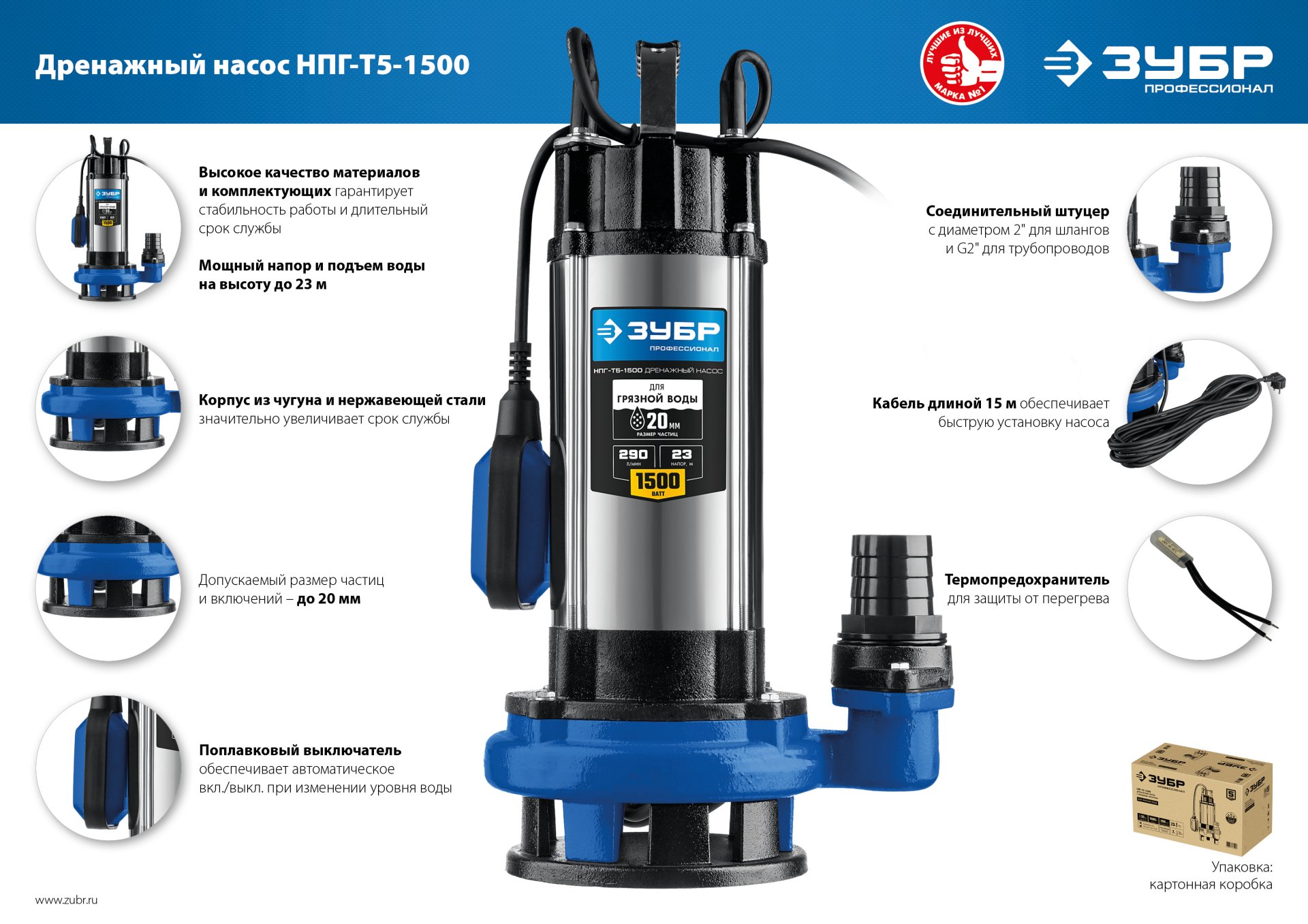 - Наличие кабеля длиной 15 м обеспечивает быструю установку насоса
