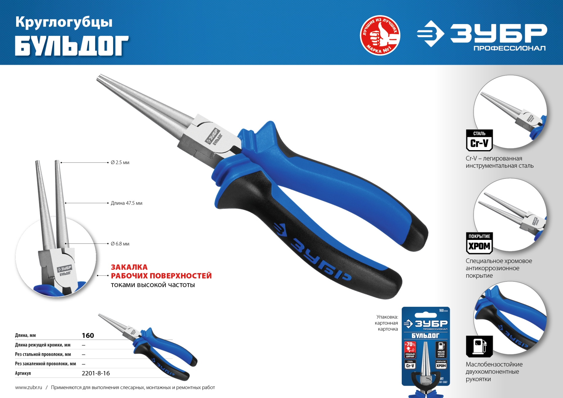 Профессиональный губцевый инструмент отвечает высочайшим промышленным стандартам качества, разработан для захвата и удержания плоских и круглых предметов.