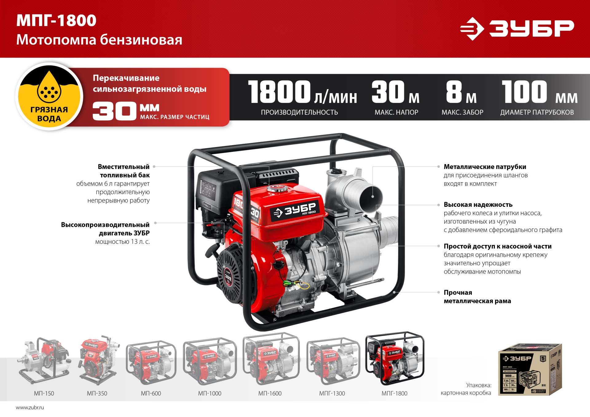 Новый лидер по перекачиванию грязи – способна безостановочно перекачивать грязь со скоростью 1800 л/ мин. Подходит для любых работ на стройплощадке, в сельском хозяйстве, для аварийных работ