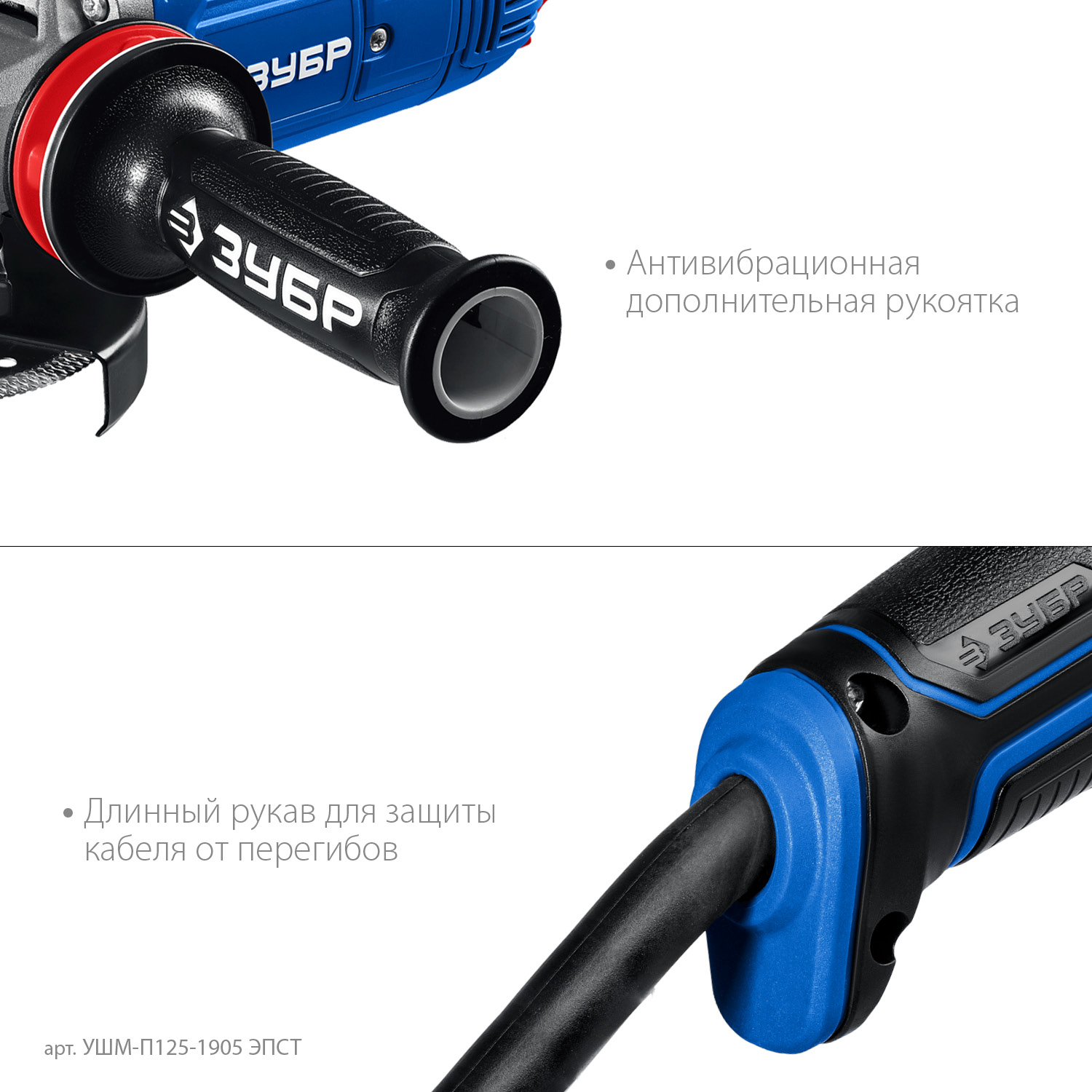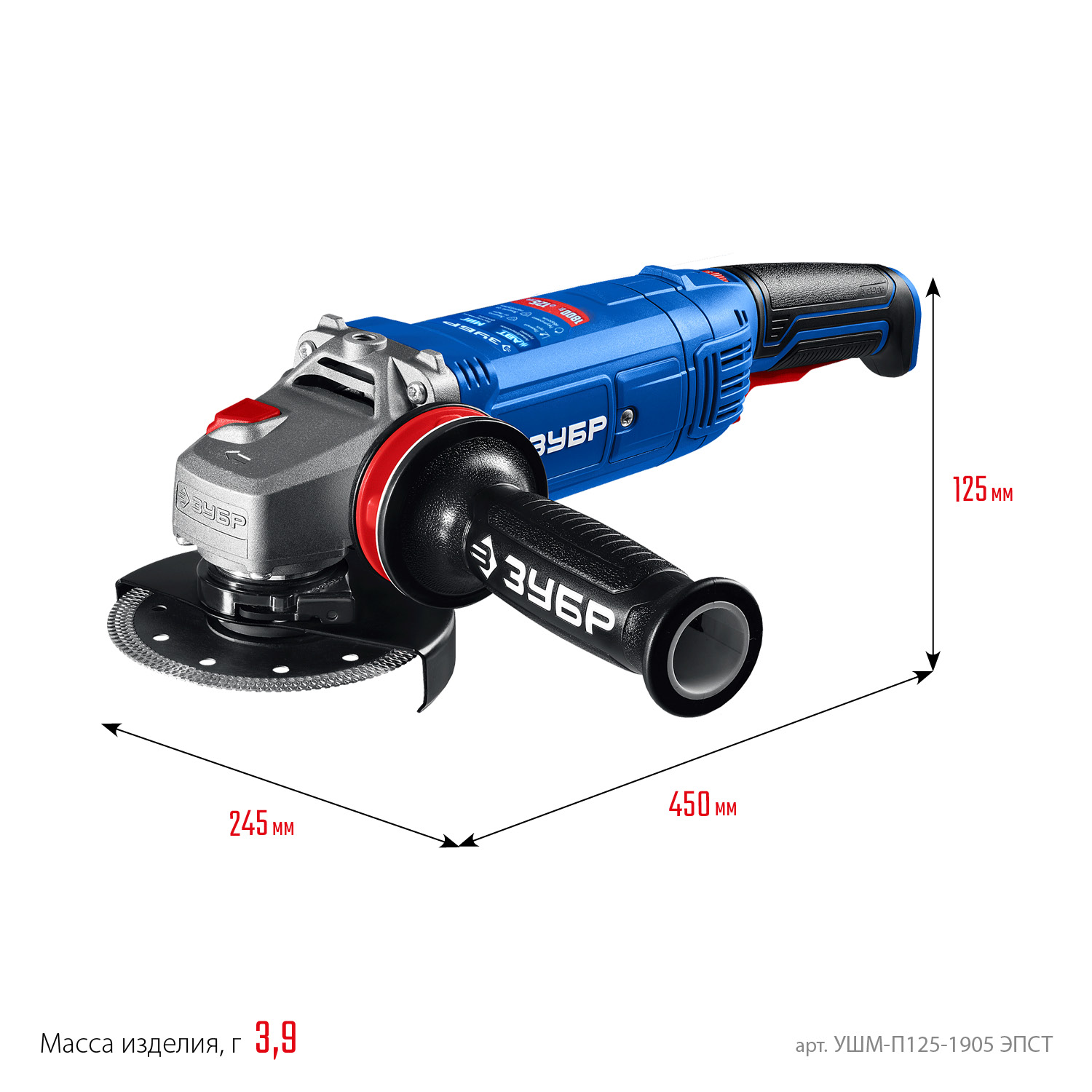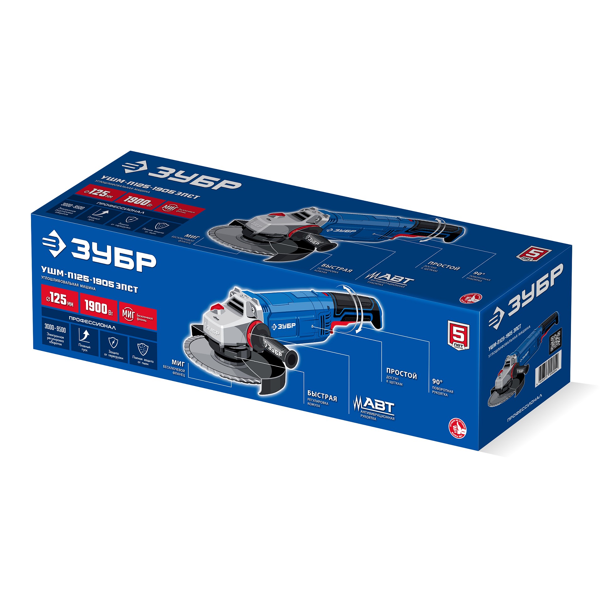 ЗУБР 1900 Вт, d125 мм, УШМ, регулировка оборотов, фланец ″МИГ″, Профессионал (УШМ-П125-1905 ЭПСТ)
