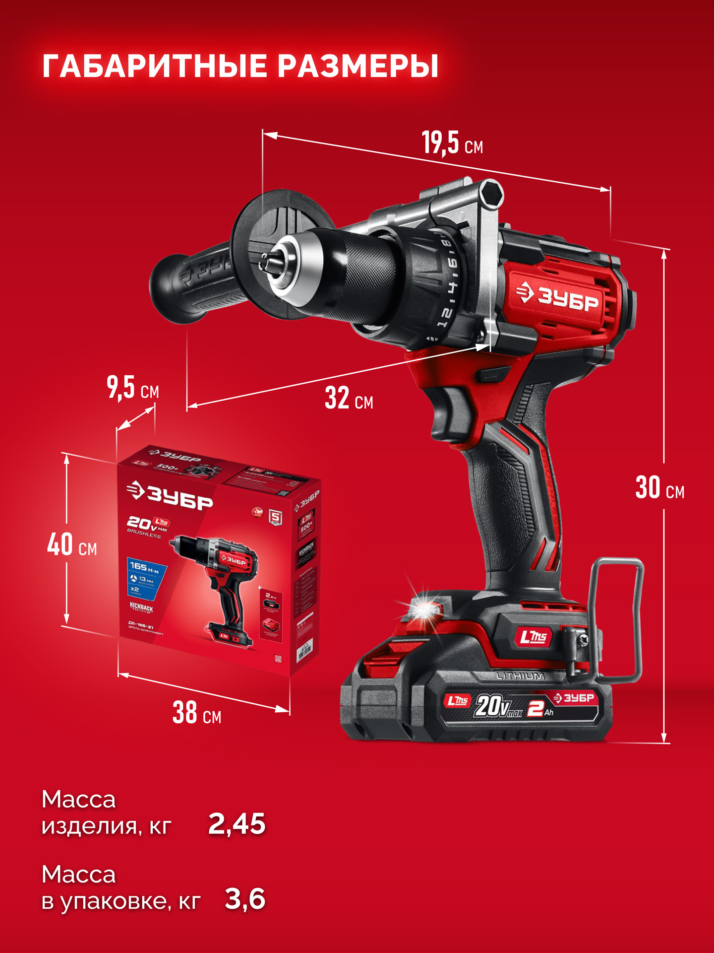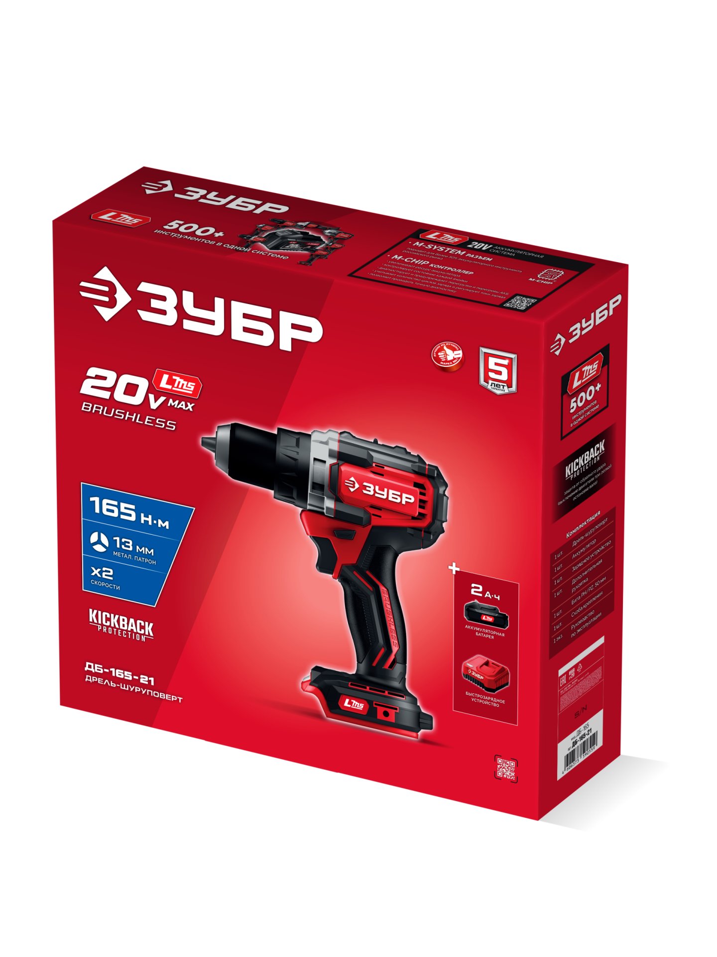 Бесщеточная дрель-шуруповерт ЗУБР системы LMS с максимальным крутящим моментом 165 Нм предназначена для работы с самым крупным крепежом (саморезы до 12 мм диаметром) и сверления отверстий до 40 мм в дереве. Встроенная защита от обратного удара предотвращает повреждение кисти при резкой блокировке вала. Комплектация с аккумулятором позволяет начать работу сразу после покупки