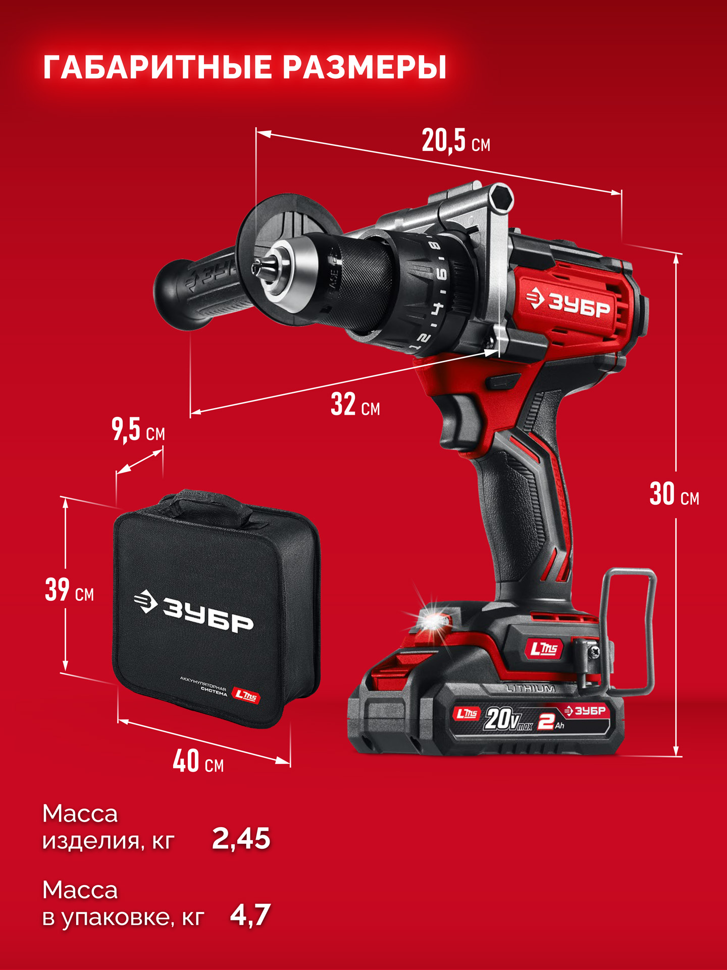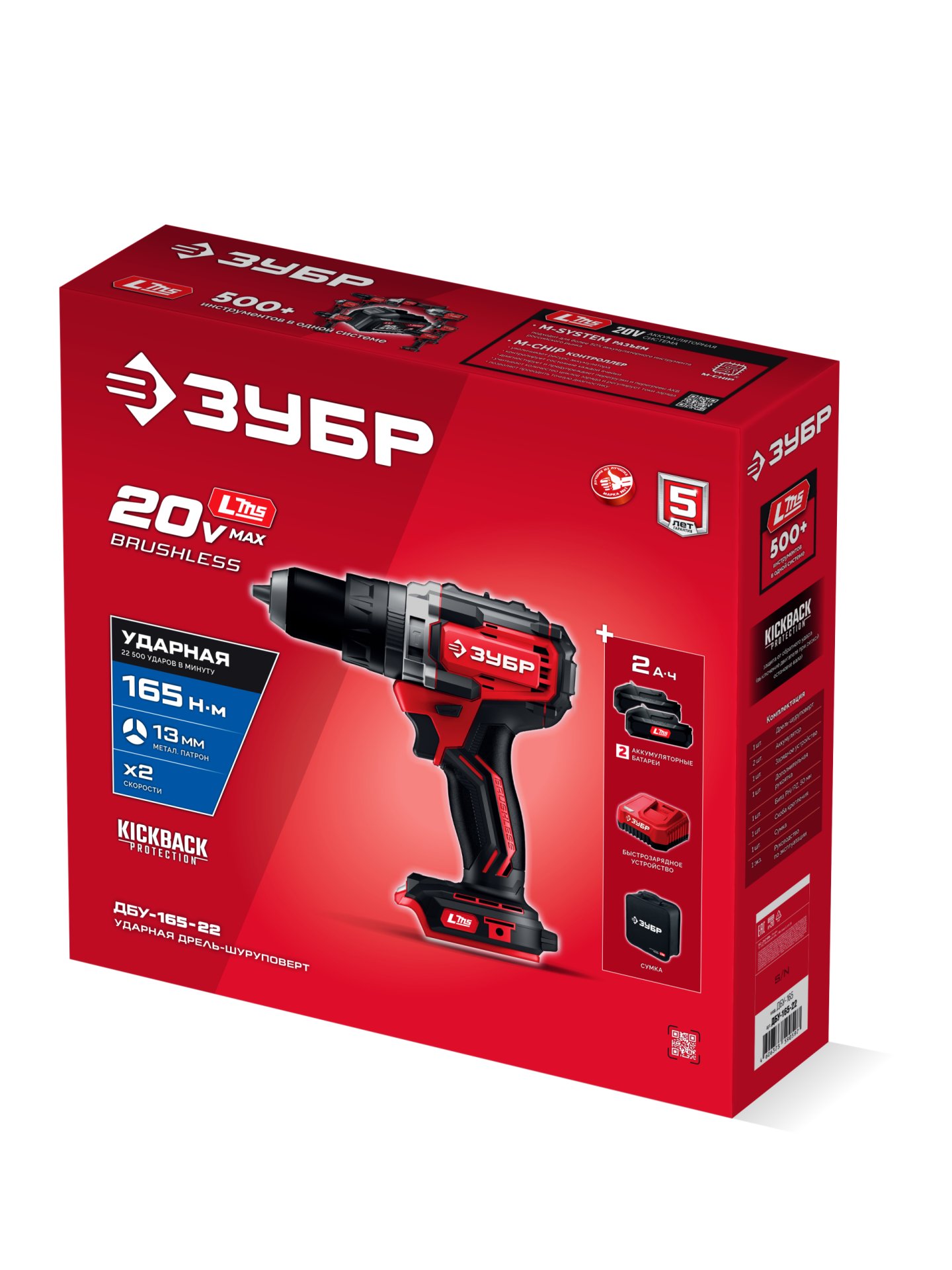 Бесщеточная ударная дрель-шуруповерт ЗУБР системы LMS с увеличенным крутящим моментом предназначена для быстрого заворачивания саморезов до 12 мм диаметром и сверления отверстий до 40 мм в дереве. Длительная работа от одного заряда обеспечивается эффективным двигателем BRUSHLESS. Расширенная функциональность за счет ударного режима работы. Комплектация с двумя аккумуляторами позволяет работать практически без остановки